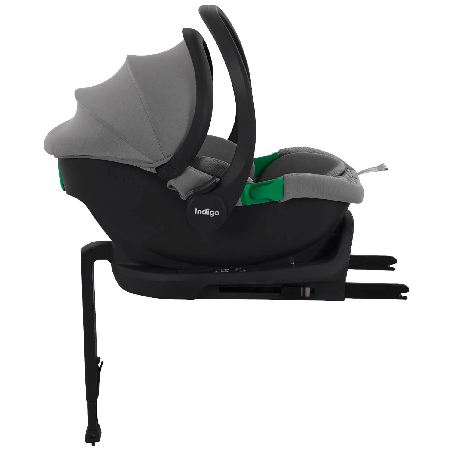 Автолюлька устанавливается на базу, которая в свою очередь оснащена системой крепления Isofix и упором в пол, что обеспечивает жёсткую фиксацию автокресла в автомобиле, позволяет достичь максимальной устойчивости и минимизирует смещение при боковом ударе.