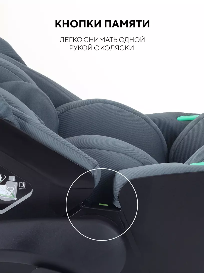 автолюльку можно закрепить на базе коляски* с помощью адаптеров (приобретаются отдельно). Аксессуар легко и быстро снимается одной рукой с базы коляски благодаря кнопкам памяти.