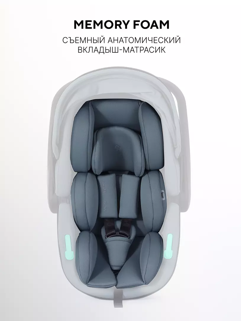 особая структура анатомического вкладыша-матрасика Memory Foam гарантирует младенцу дополнительную безопасность и комфорт в районе головы, плеч и спины. Когда кроха подрастет, вкладыш можно снять.