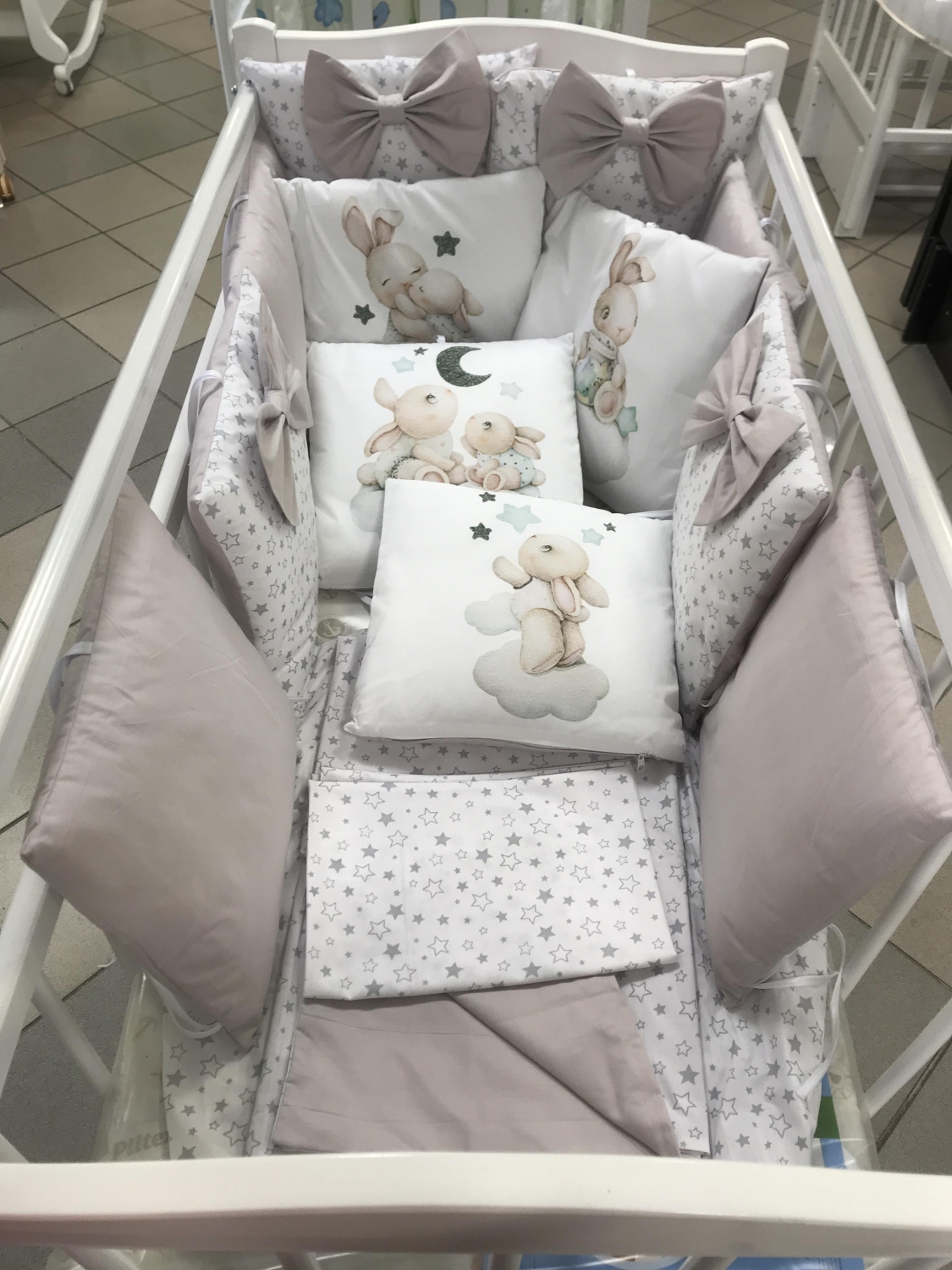 Комплект в кроватку Пухлики 17 предметов, без балдахина (Любимый малыш - серый)
