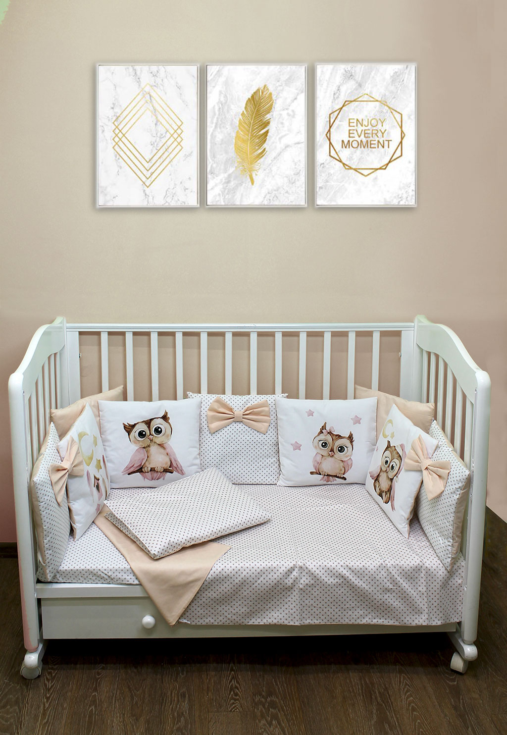 Комплект в кроватку Пухлики 17 предметов, без балдахина (Мамина радость, персиковый)
