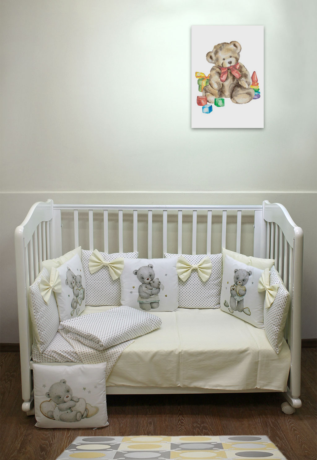 Комплект в кроватку Пухлики 17 предметов, без балдахина (Мишка соня - серый)