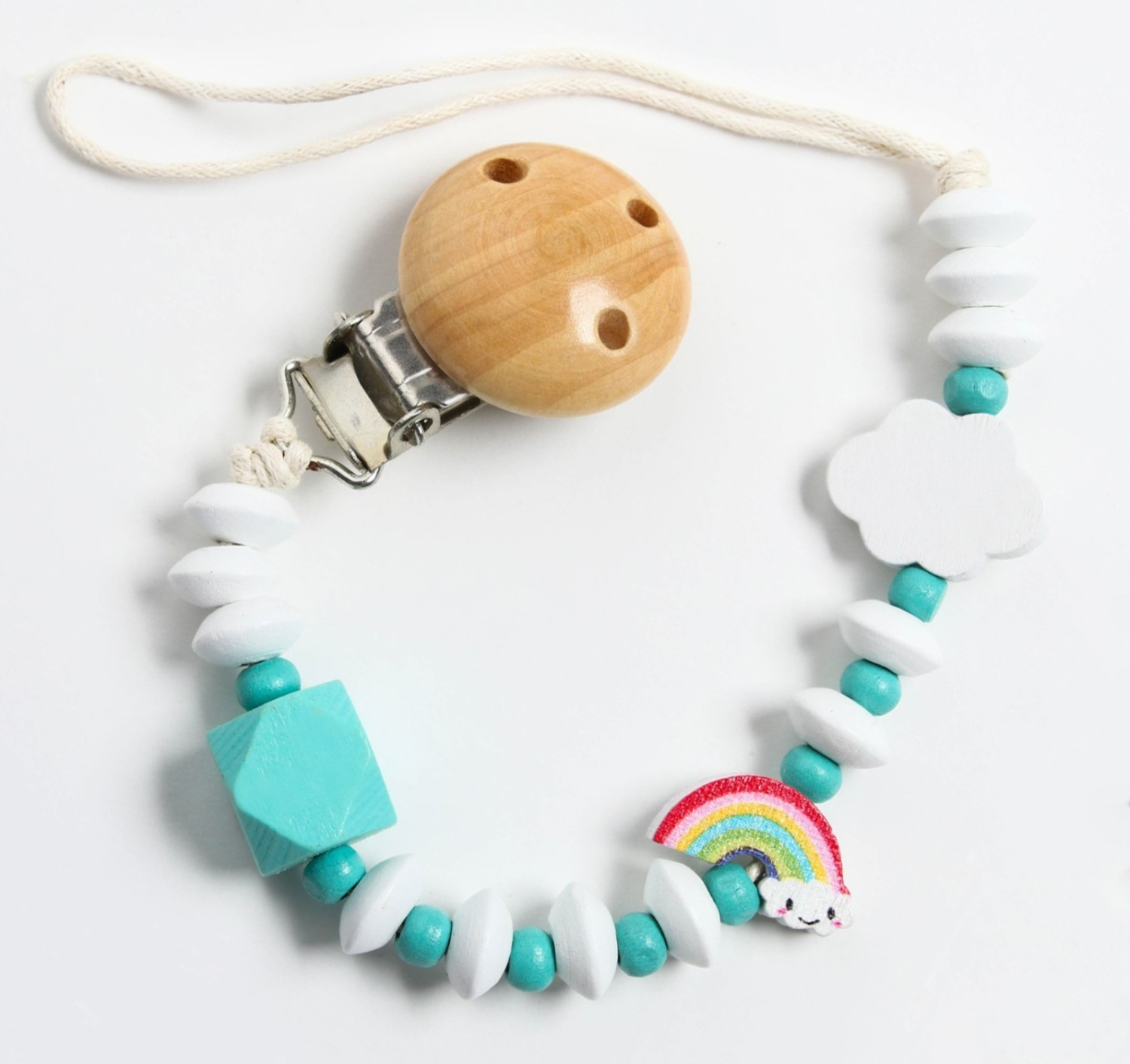 Изделие фиксируется на одежде ребёнка. На конце цепочки есть карабин, который зацепляется за кольцо пустышки. Надёжное крепление убережёт вещь от падения на пол, если малютка случайно выронит её изо рта.