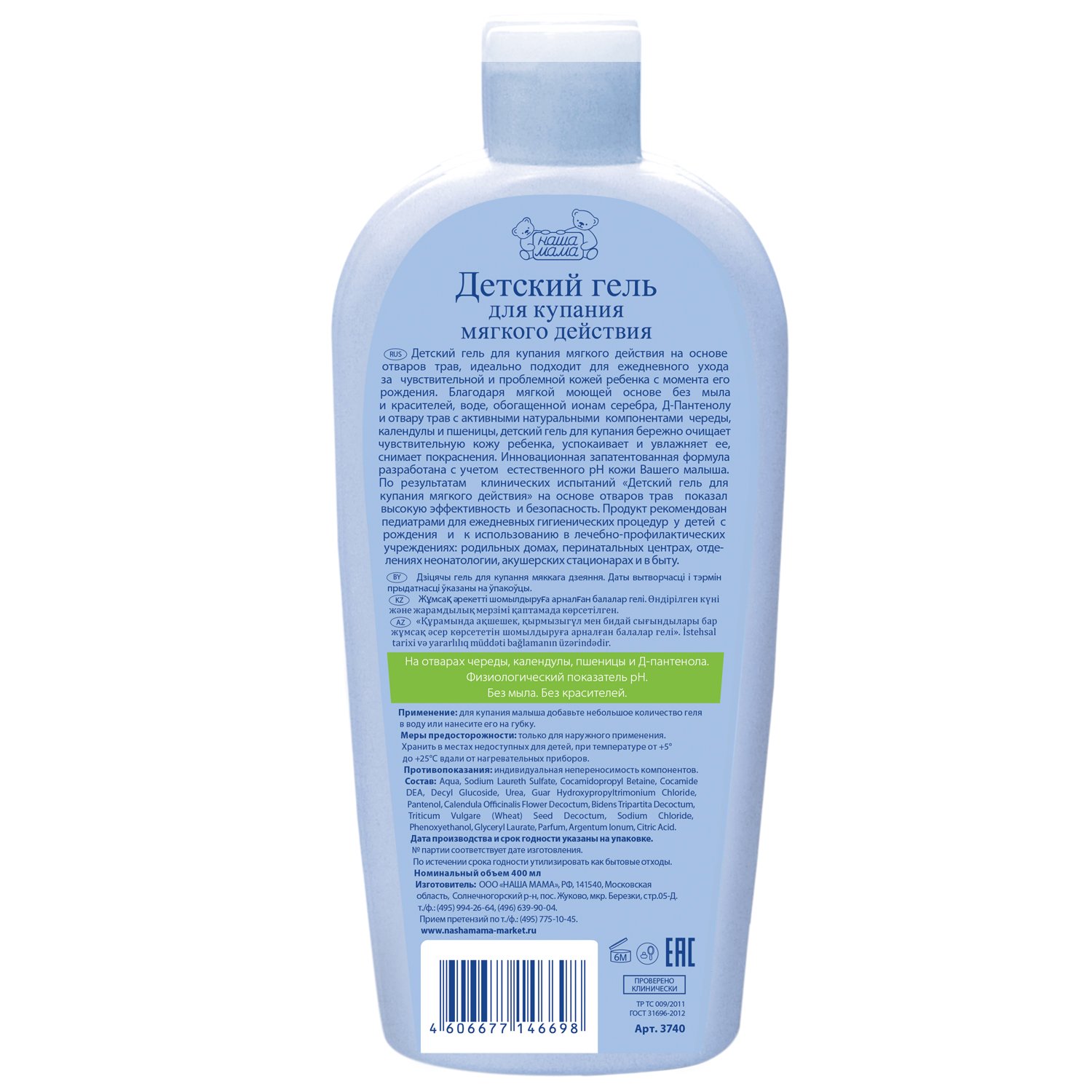 Благодаря мягкой моющей основе без мыла и красителей, воде, обогащенной ионами серебра, Д-пантенолу и отвару трав с активными натуральными компонентами череды, календулы и пшеницы, детский гель для купания бережно очищает чувствительную кожу ребенка, успокаивает и увлажняет ее, снимает покраснения.
