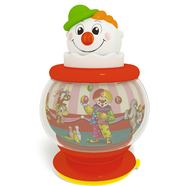 Яркая цветная устойчивая юла с изображениями цирковых клоунов.
