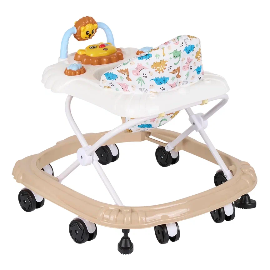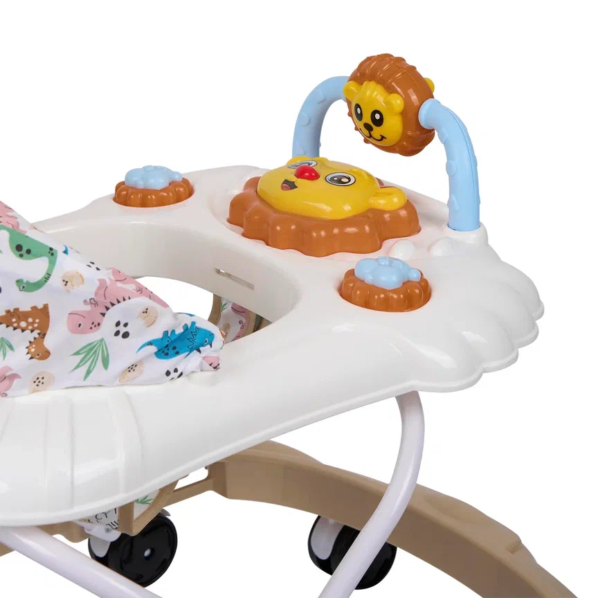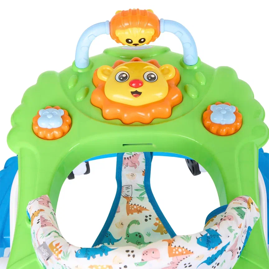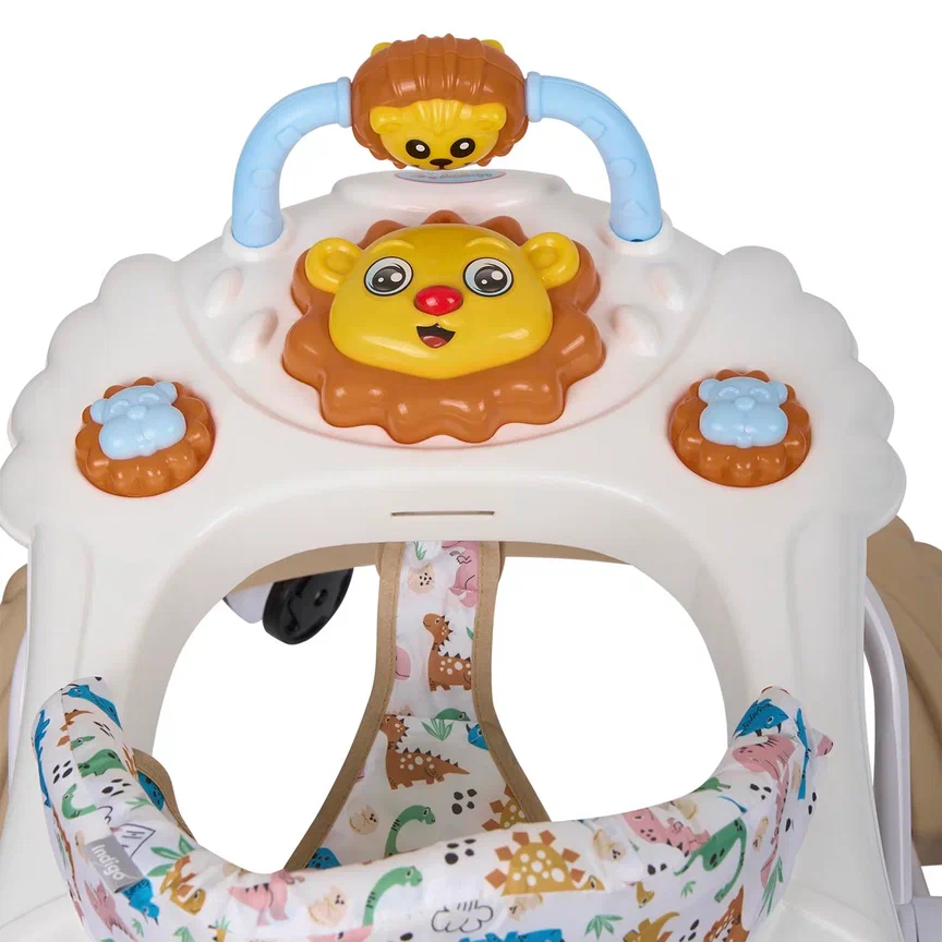 Ходунки INDIGO "Львёнок" — удачное сочетание безопасности, удобства и яркого дизайна. Игровая панель с крутящимися элементами и музыкальным сопровождением делает первые шаги ребёнка увлекательными и интересными. Регулируемое по высоте сиденье с тремя возможными положениями позволяет использовать модель по мере роста малыша. Конструкция на устойчивых колёсах (8 шт.) обеспечивает плавное передвижение и хорошую манёвренность. При необходимости ходунки фиксируются стопорами. В сложенном виде модель компактна и не занимает много места при хранении и транспортировке.