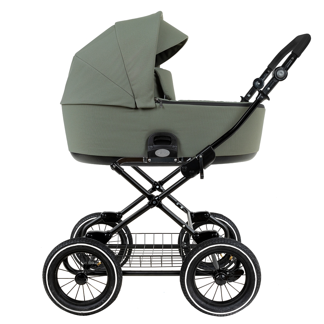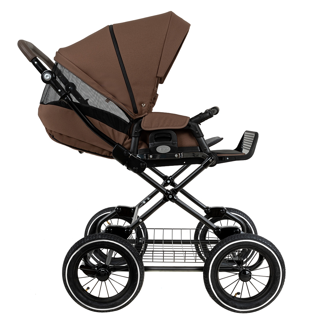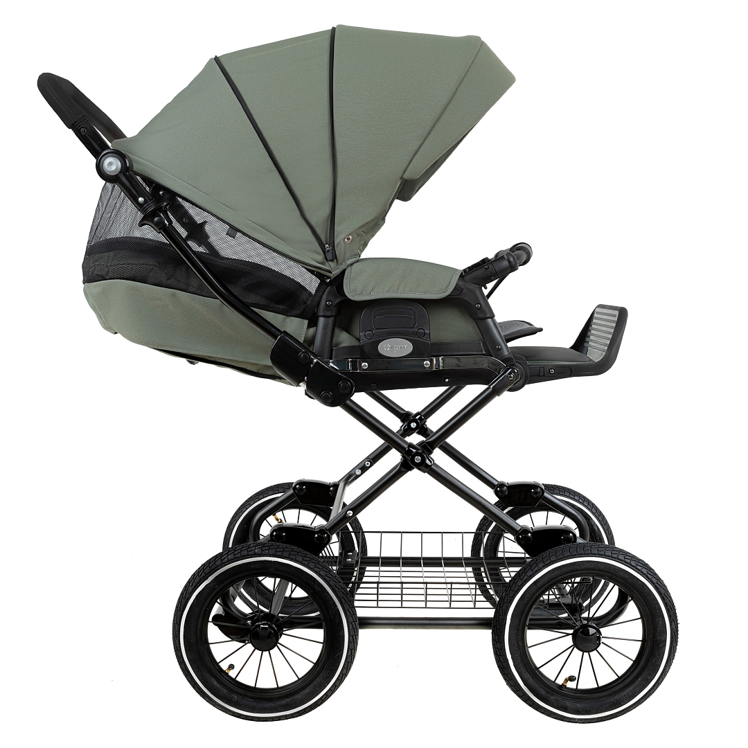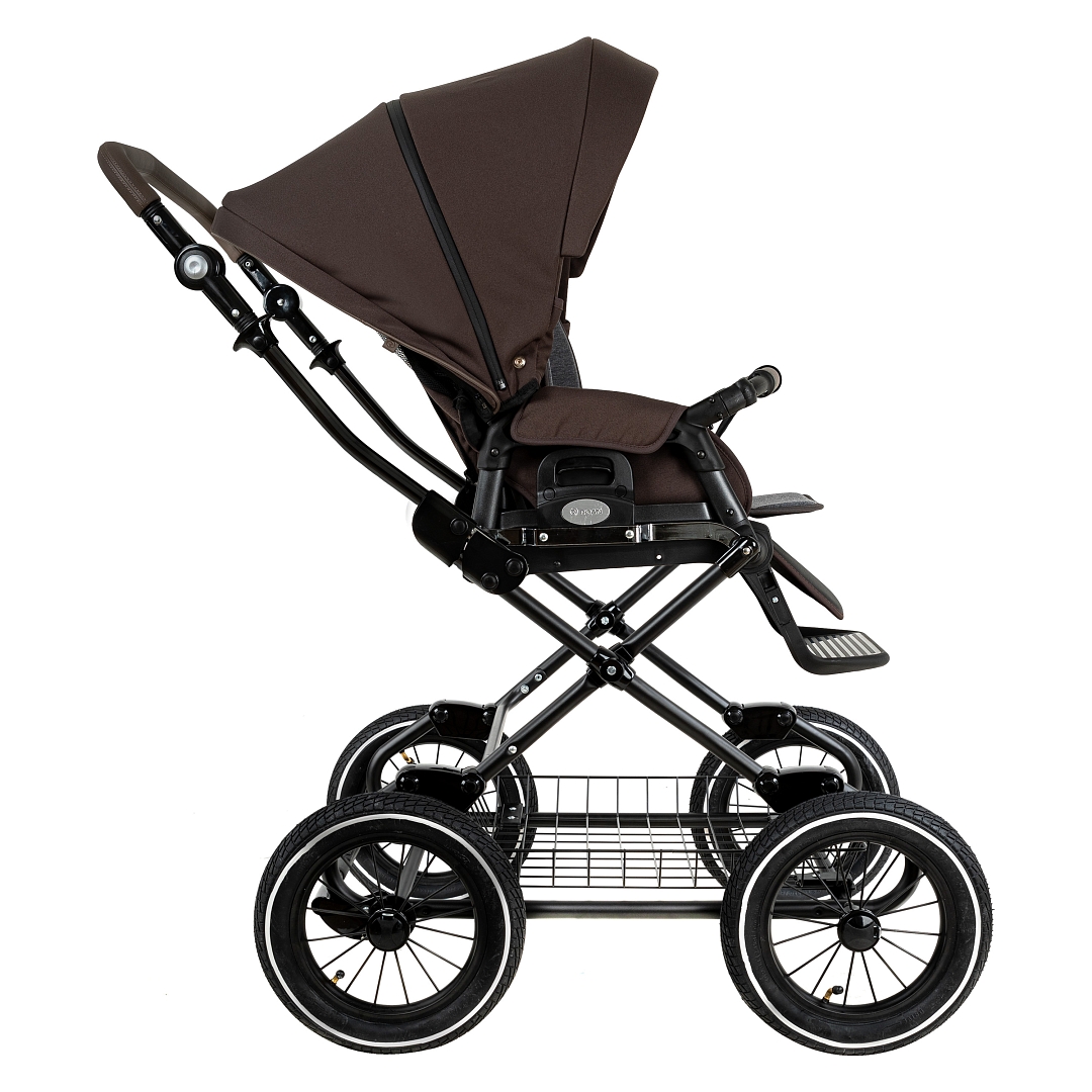 Главное достоинство такой рамы, что при движении по труднопроходимой местности колеса не вибрируют, коляска движется очень легко, а идеальная амортизация, основанная на кулисах, закрепленных в четырех точках, обеспечивает хороший сон для ребенка.
