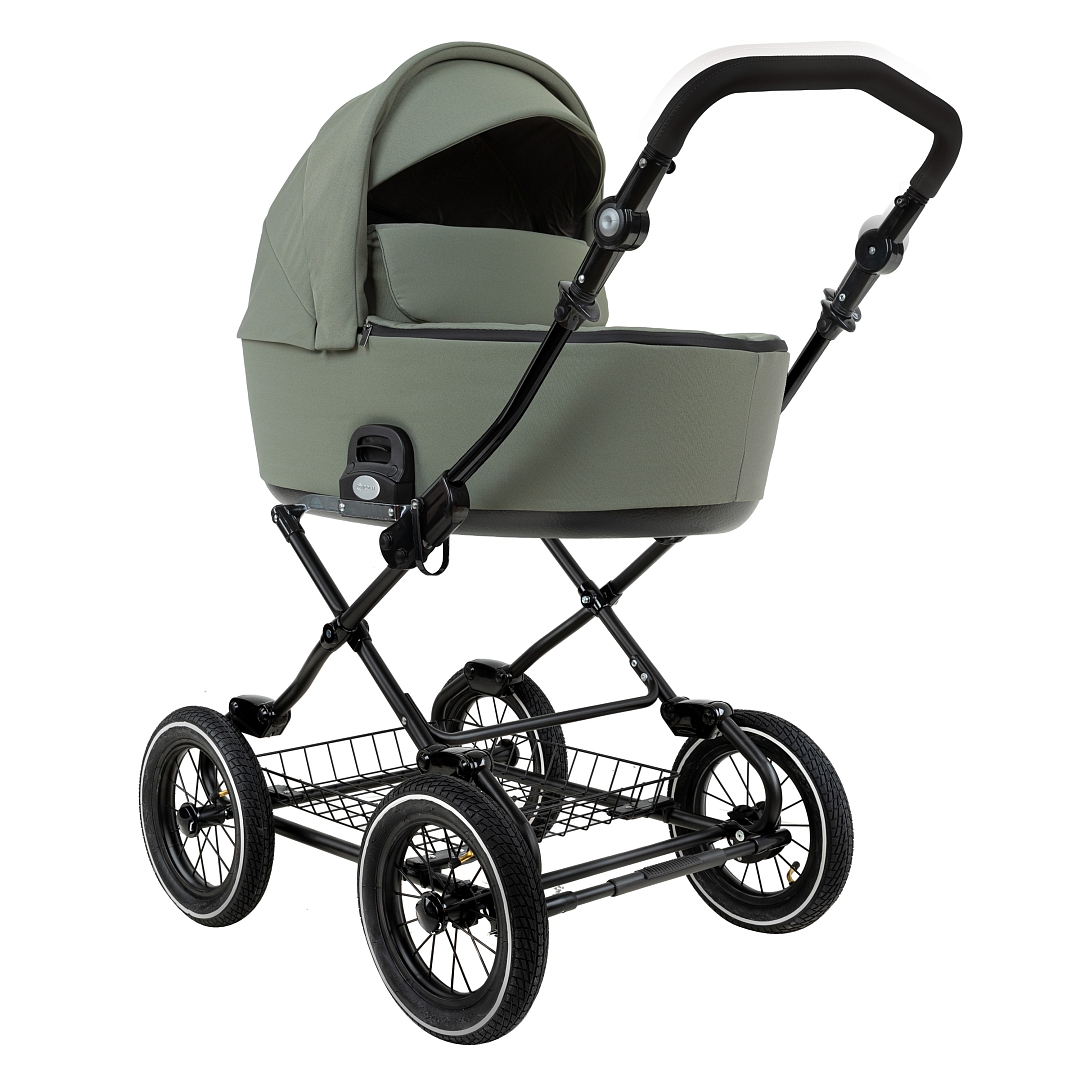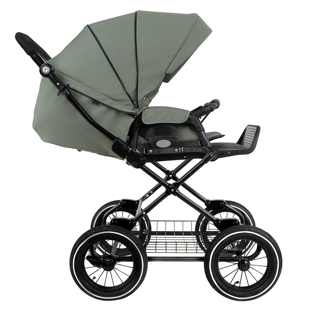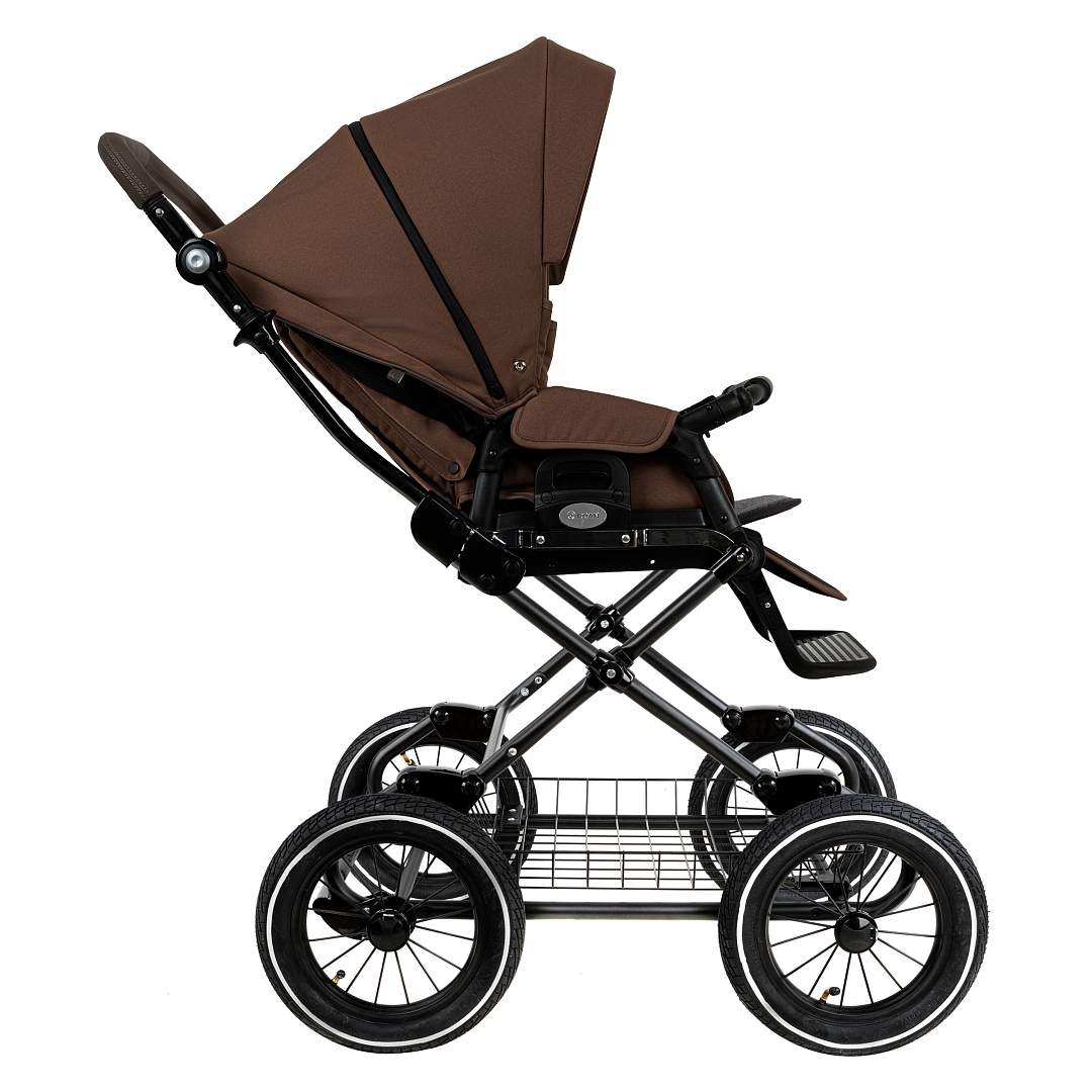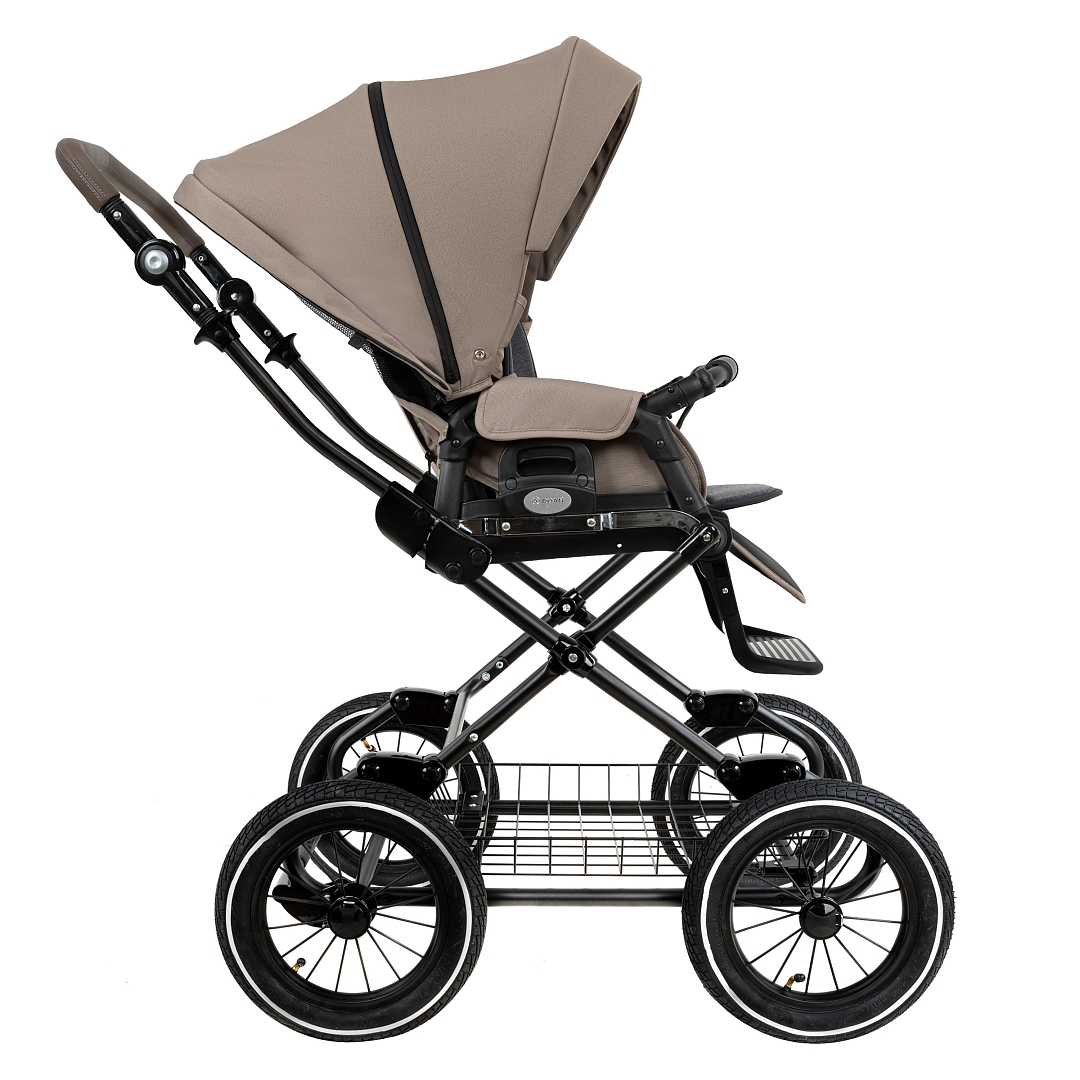 Главное достоинство такой рамы, что при движении по труднопроходимой местности колеса не вибрируют, коляска движется очень легко, а идеальная амортизация, основанная на кулисах, закрепленных в четырех точках, обеспечивает хороший сон для ребенка.