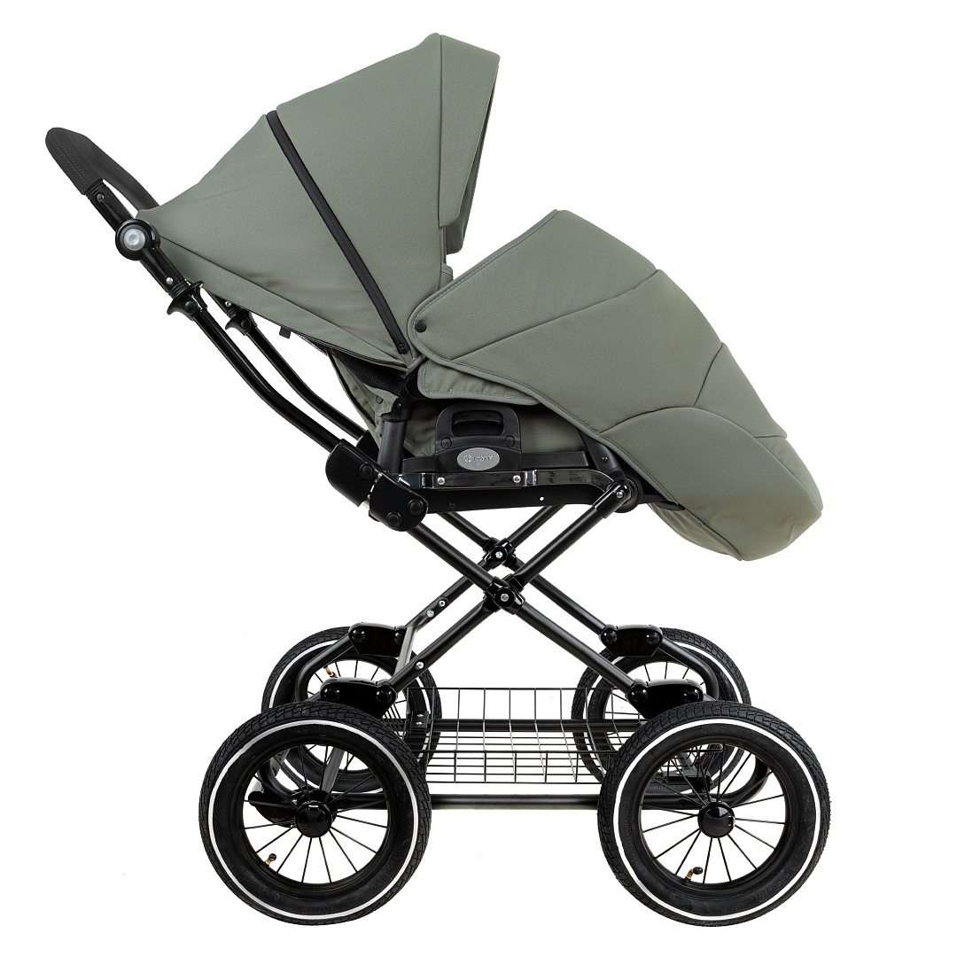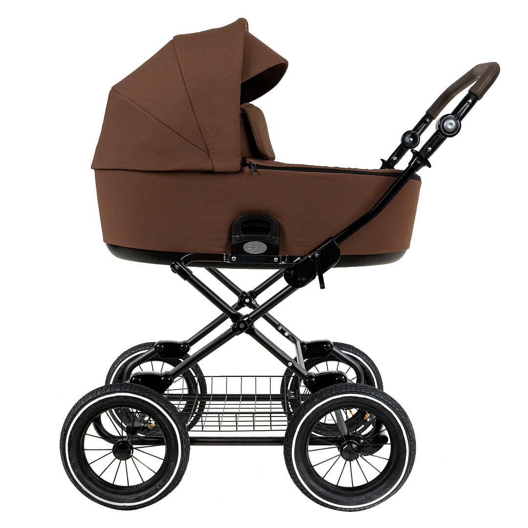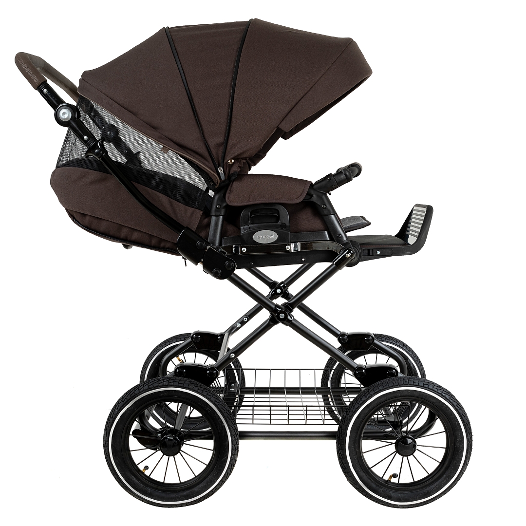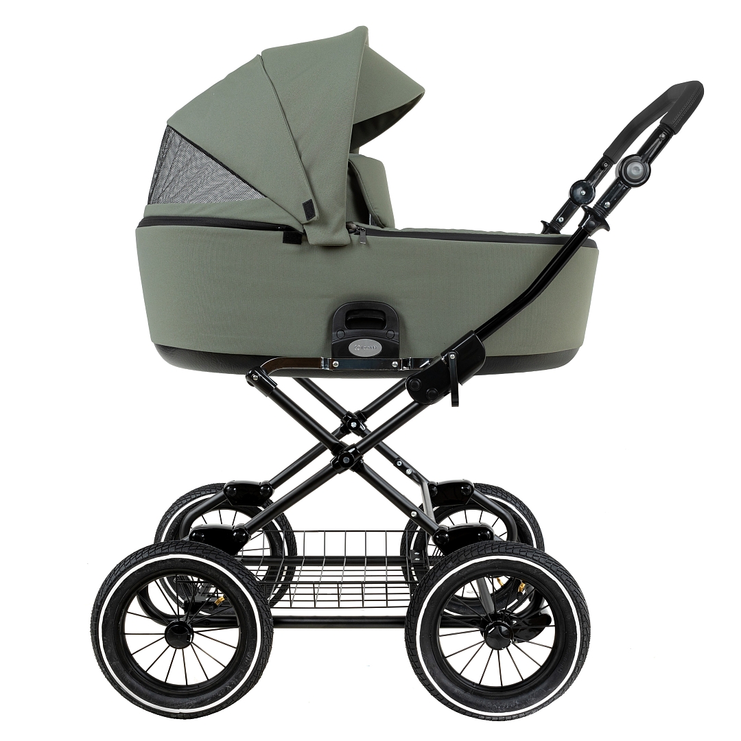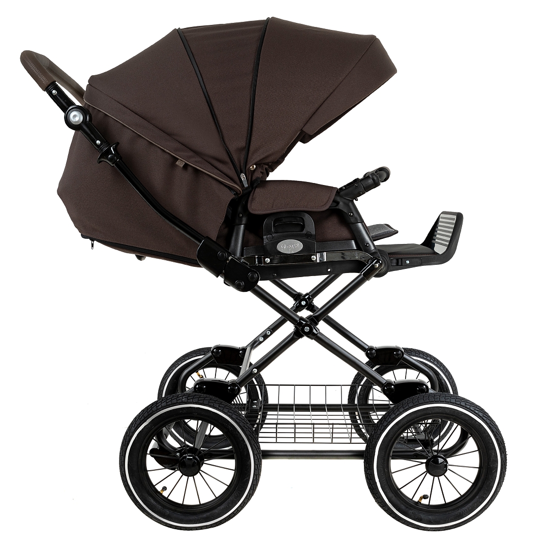 Главное достоинство такой рамы, что при движении по труднопроходимой местности колеса не вибрируют, коляска движется очень легко, а идеальная амортизация, основанная на кулисах, закрепленных в четырех точках, обеспечивает хороший сон для ребенка.
