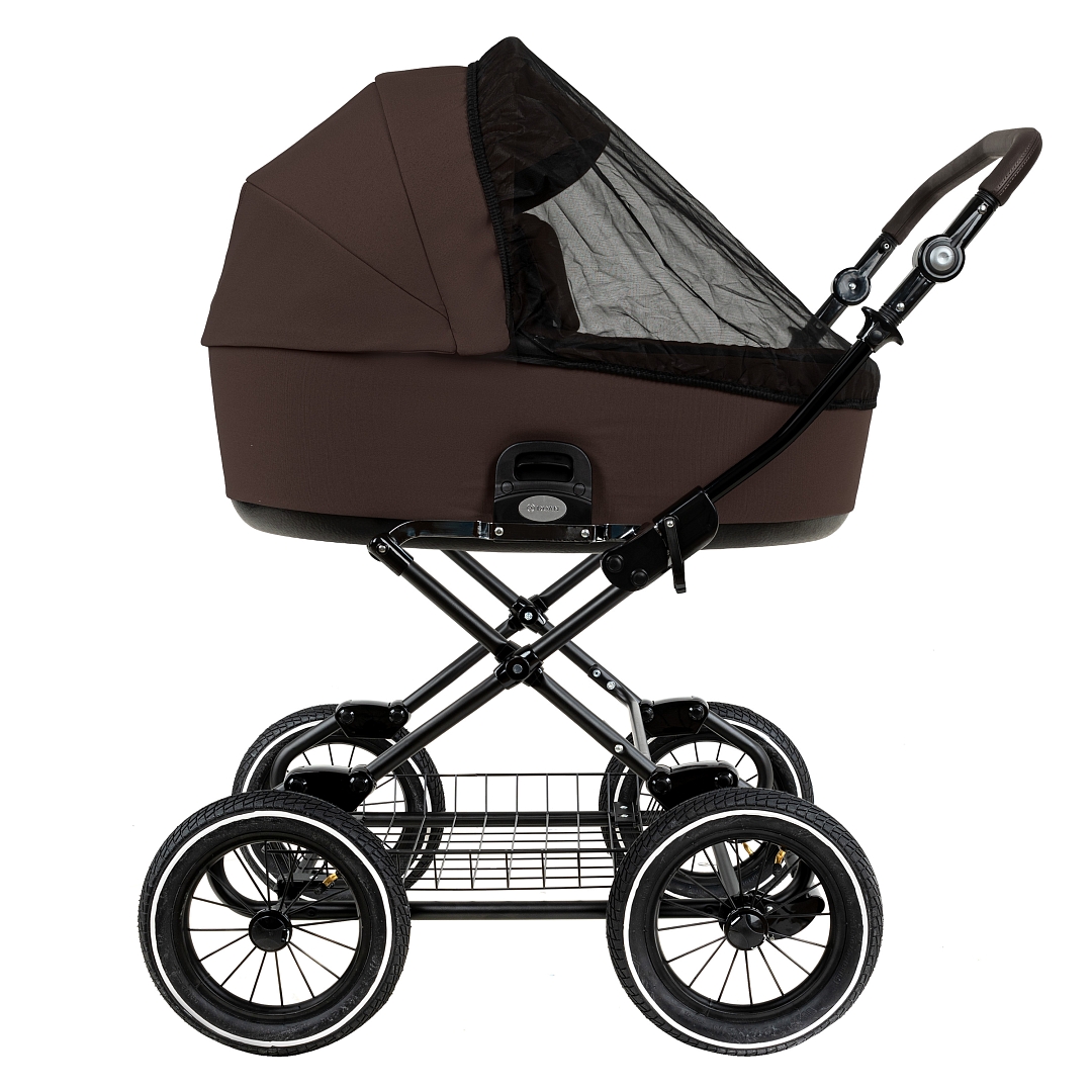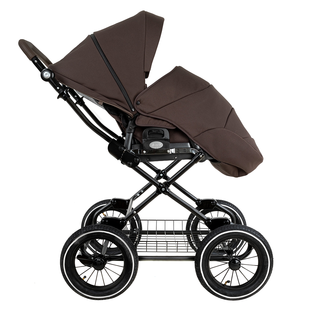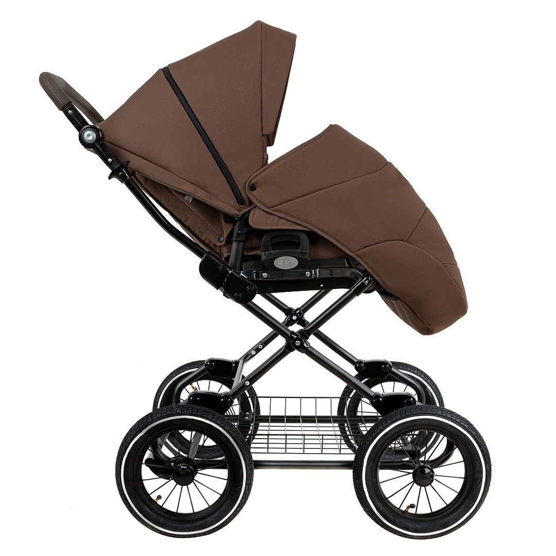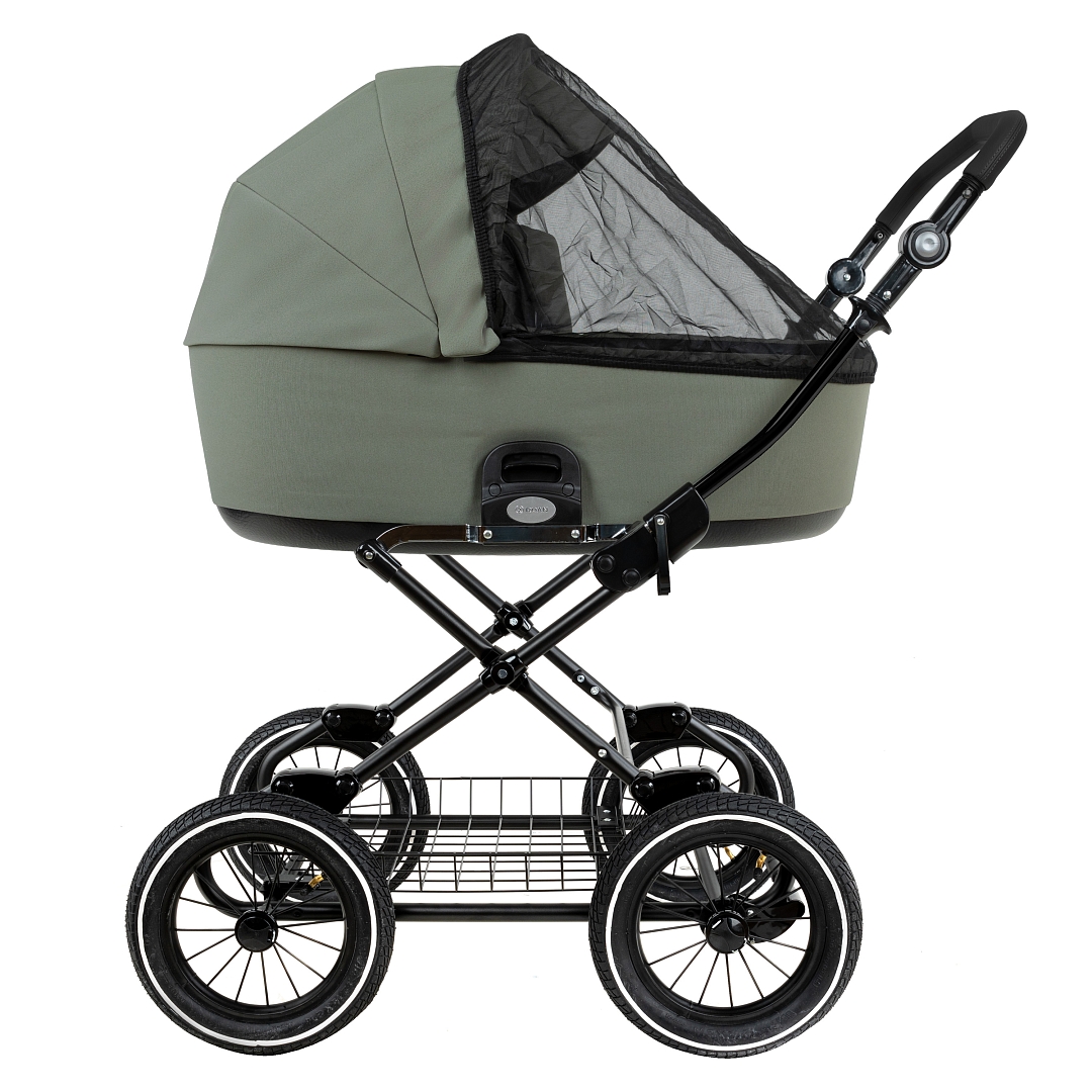 Главное достоинство такой рамы, что при движении по труднопроходимой местности колеса не вибрируют, коляска движется очень легко, а идеальная амортизация, основанная на кулисах, закрепленных в четырех точках, обеспечивает хороший сон для ребенка.
