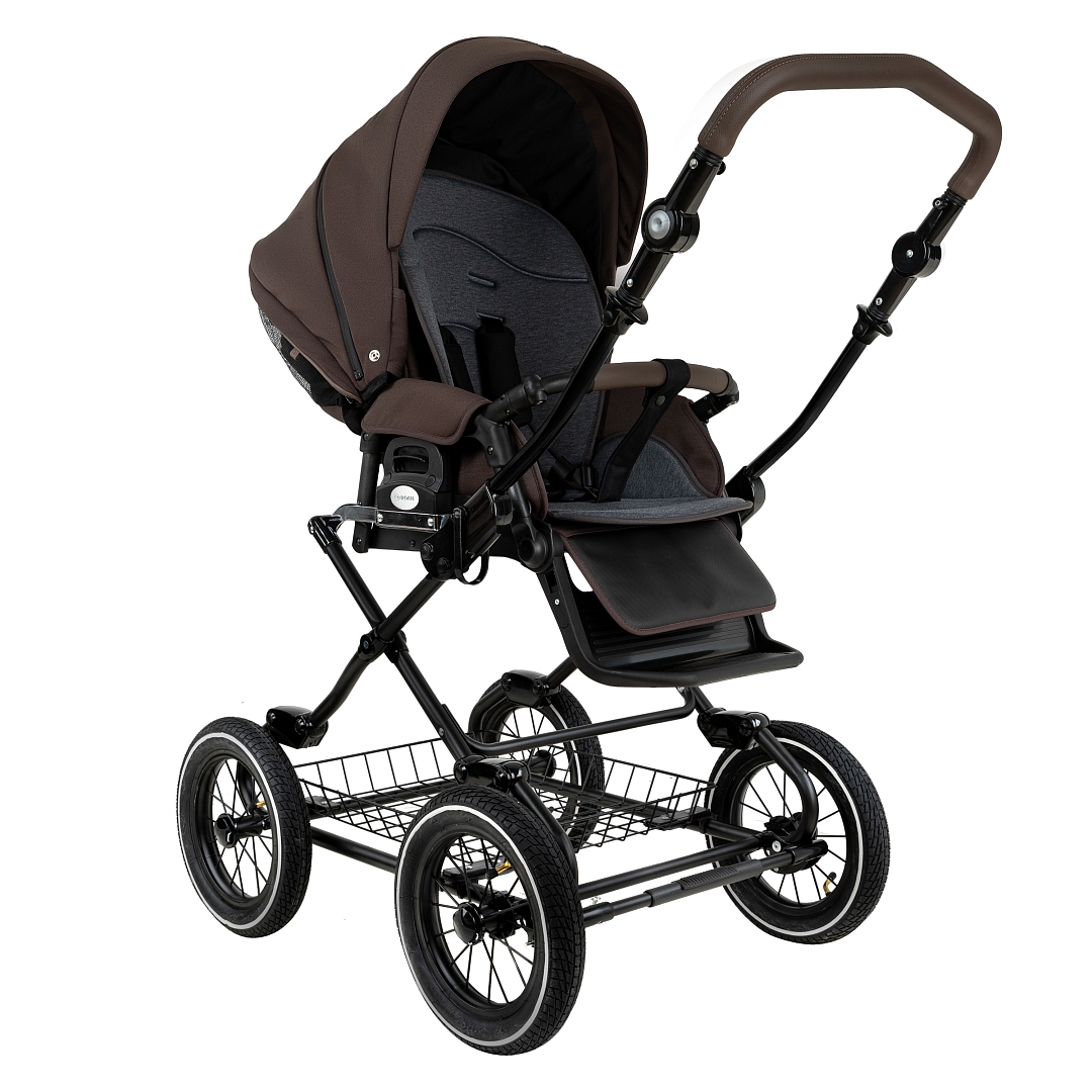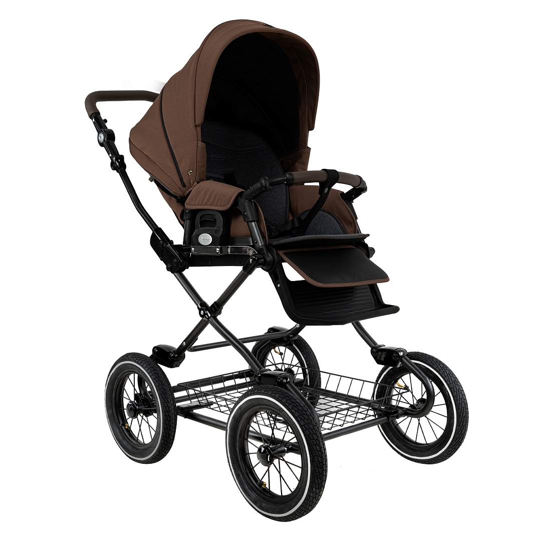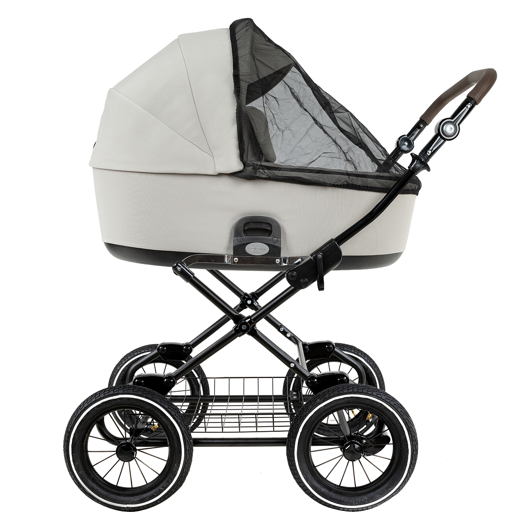 Стальная рама коляски окрашена порошковой краской в чёрный, белый или серый цвет.
