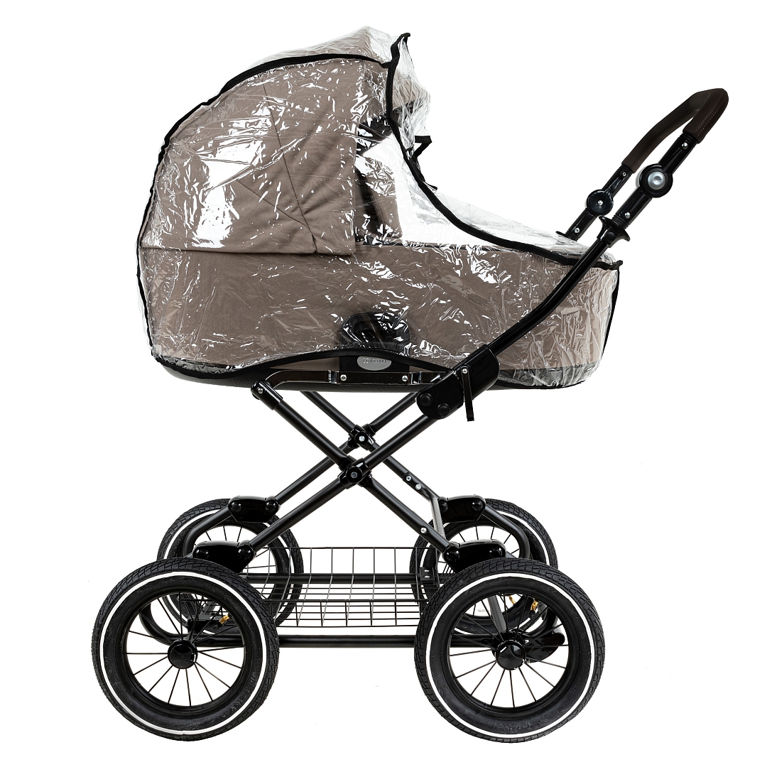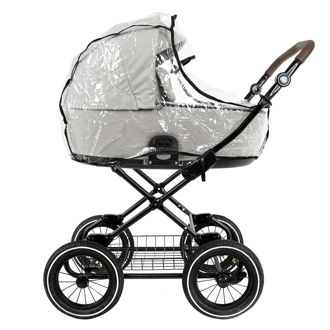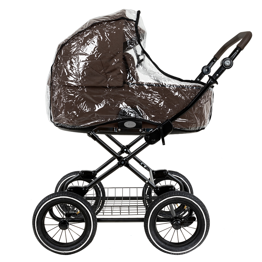 Накидка на люльку имеет дополнительный отворот со смотровым окном, сам отворот полностью закрывает ребенка от непогоды и крепится за счёт магнитов.