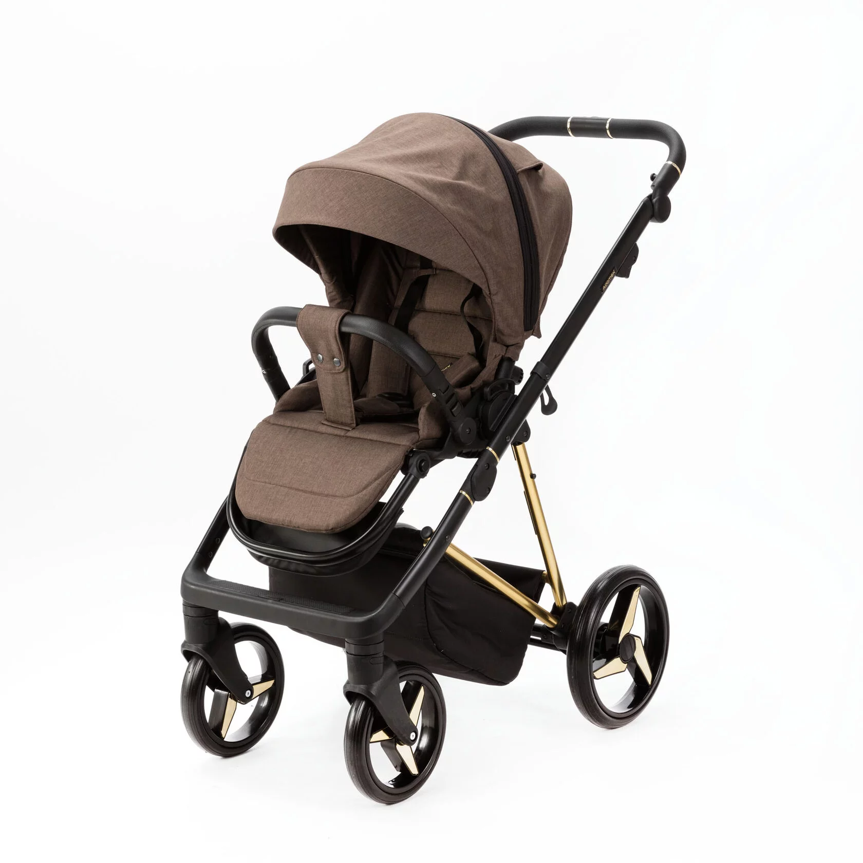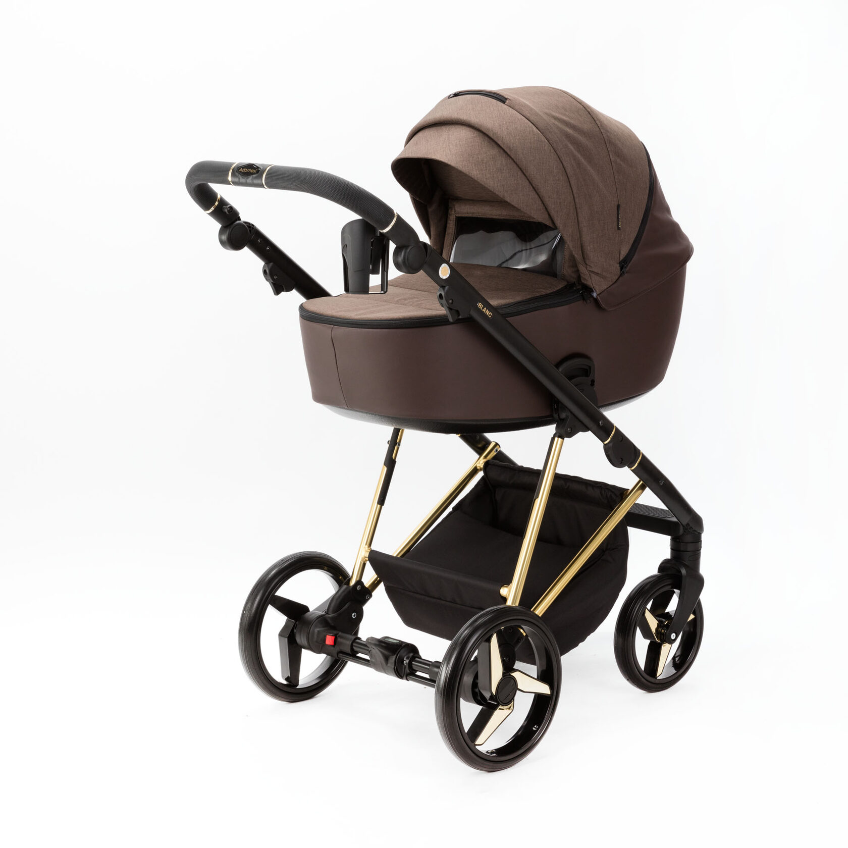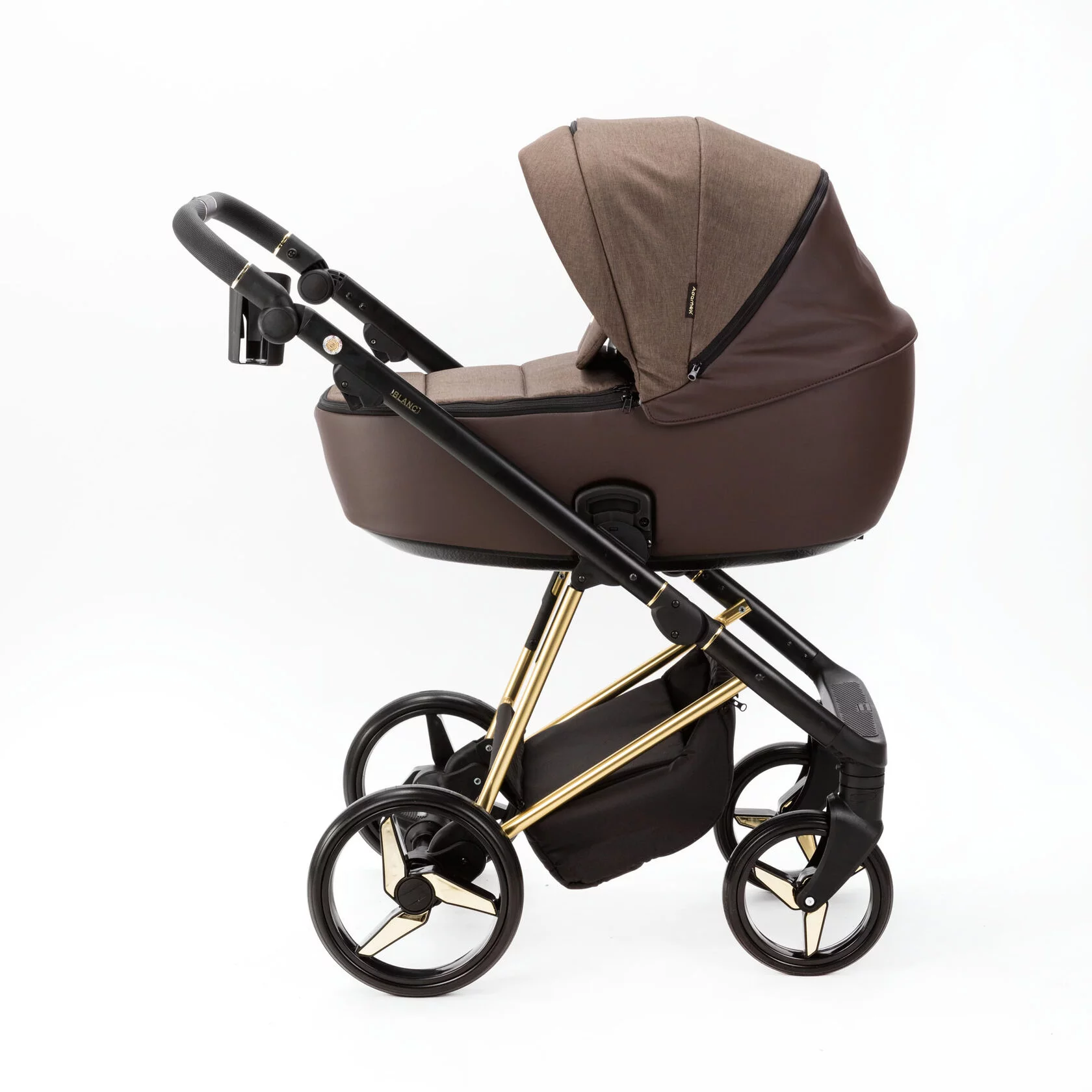 Коляска Adamex Blanc Special Edition 2в1 (BL-PS702/Шоколадная ткань/шоколадная экокожа/рама золото)