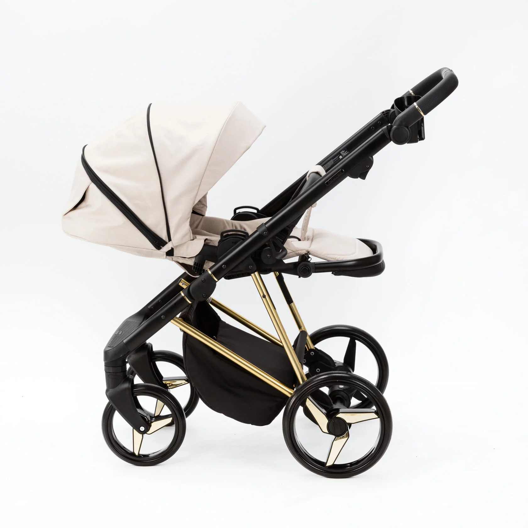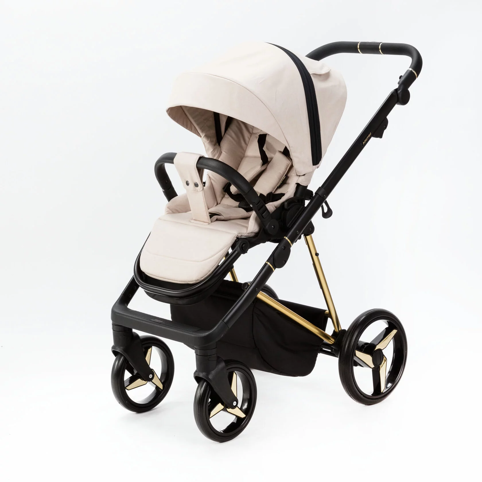 Коляска Adamex Blanc Special Edition 2в1 (BL-PS802/Светло-бежевая ткань/бежевая экокожа/рама золото)