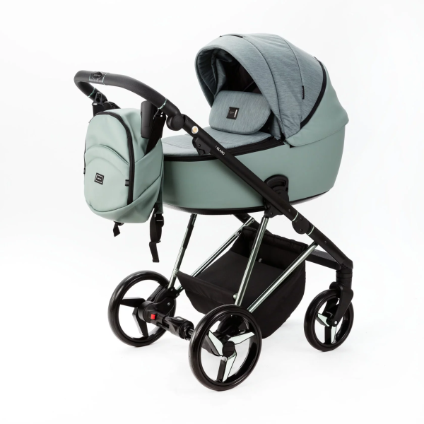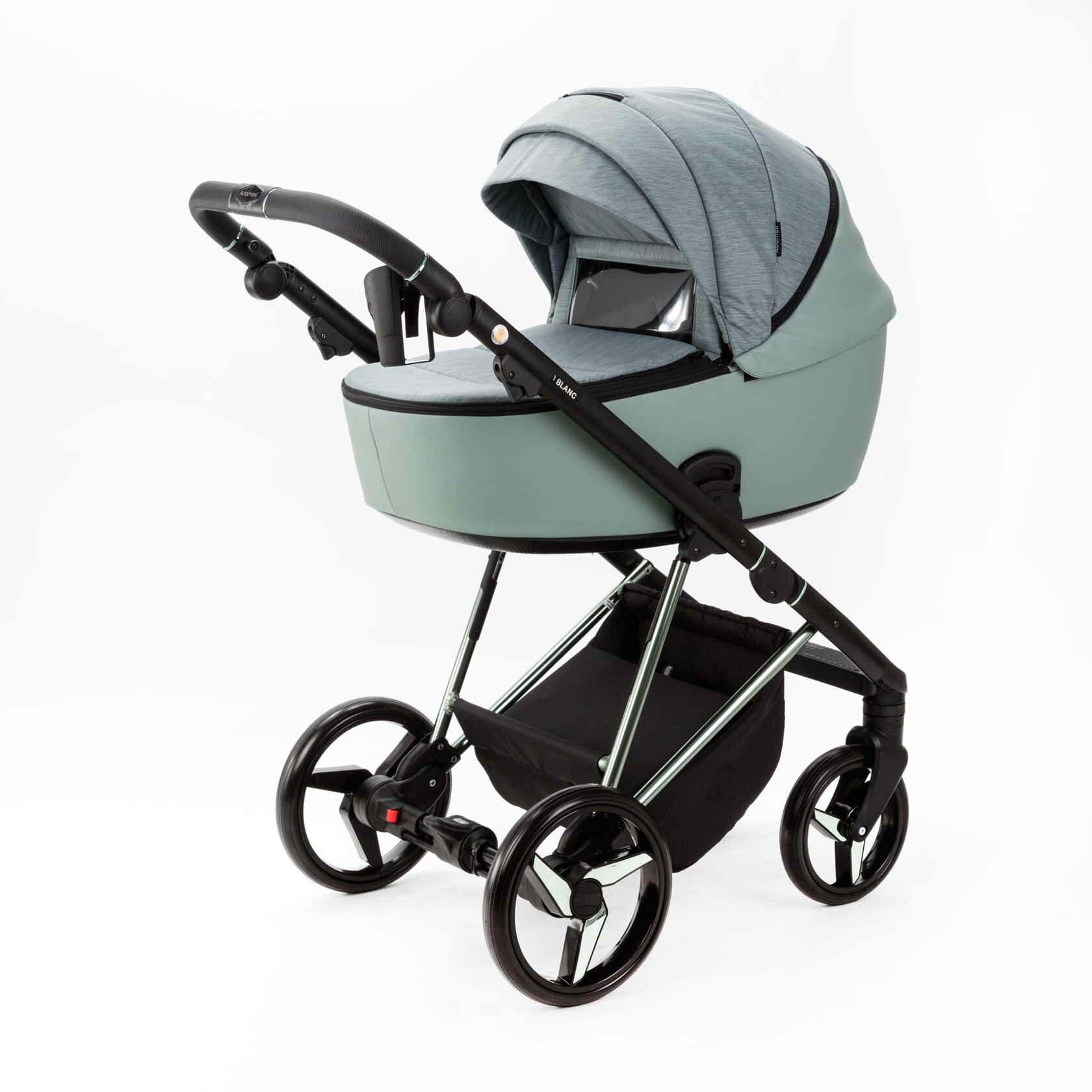 Коляска Adamex Blanc Special Edition 2в1 (BL-PS796/A/Серо-зеленая ткань/зеленая экокожа/рама зеленый хром)
