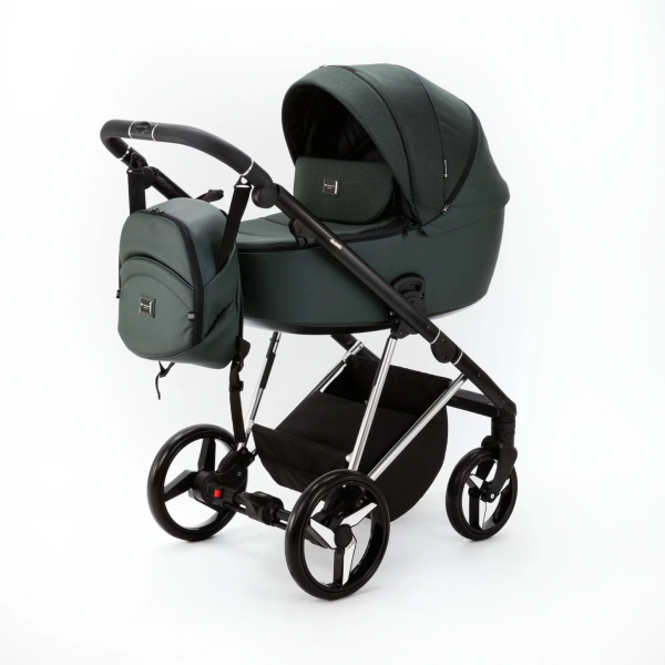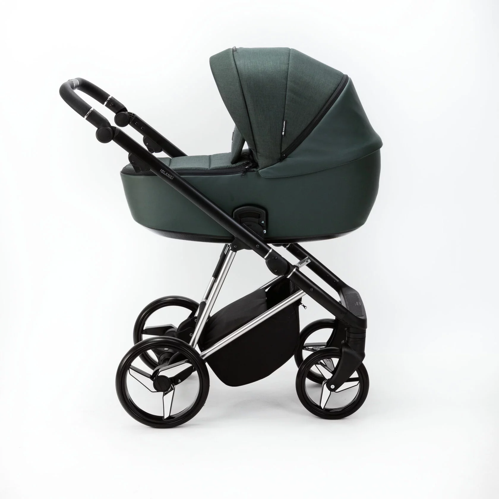 Коляска Adamex Blanc Special Edition 2в1 (BL-PS791/Темно-зеленая ткань/темно-зеленая экокожа/рама хром)