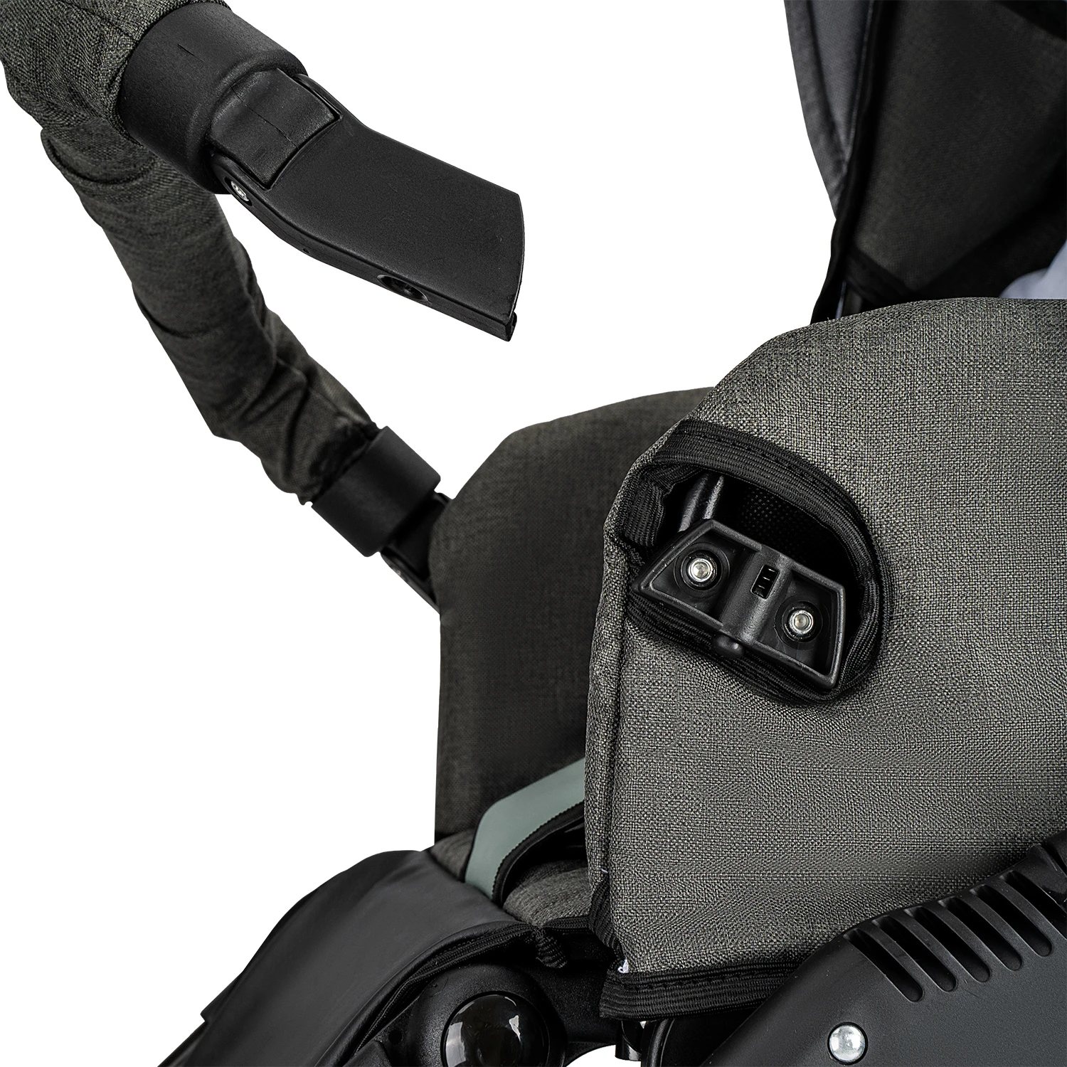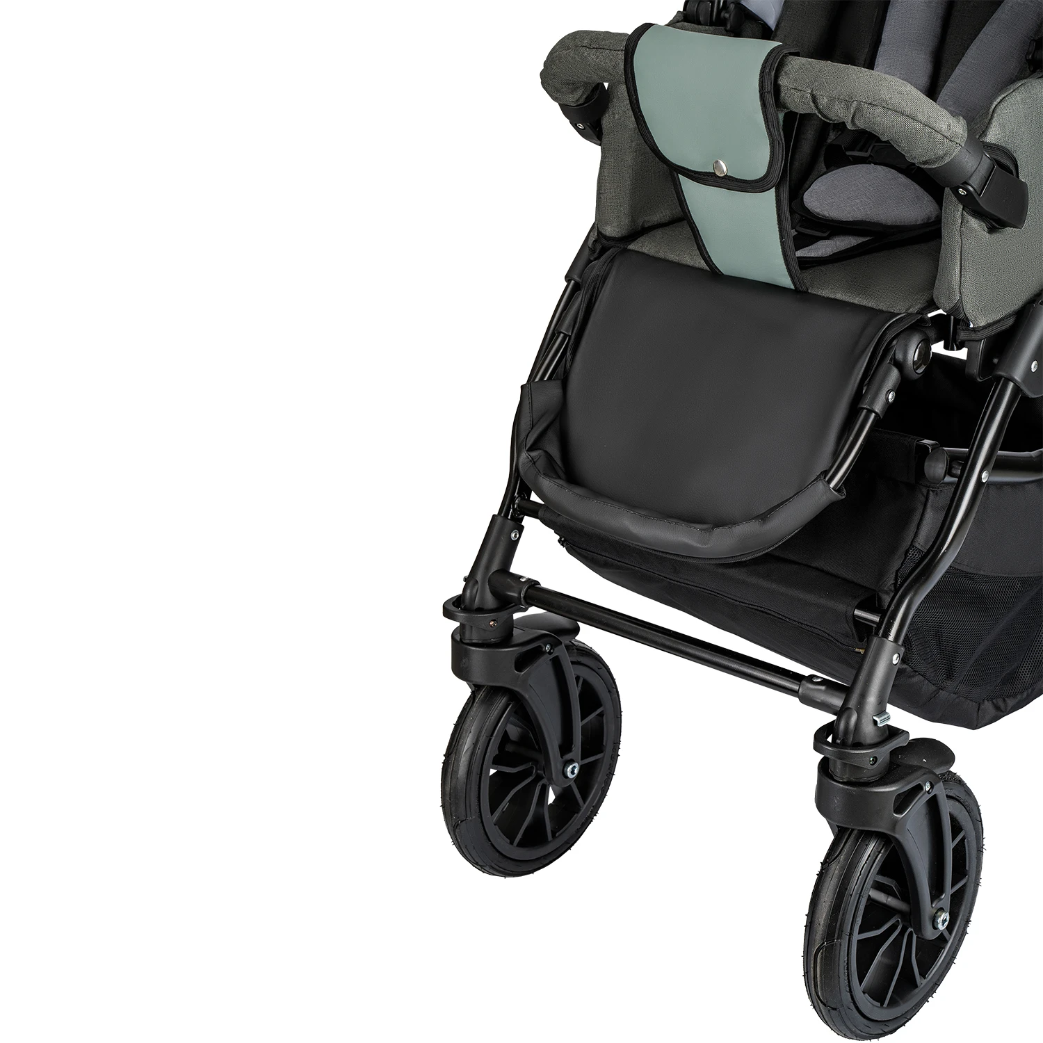 Регулируемая по высоте ручка, облегченная алюминиевая рама и поворотные колеса спереди позволяют родителям без труда управлять этой коляской.