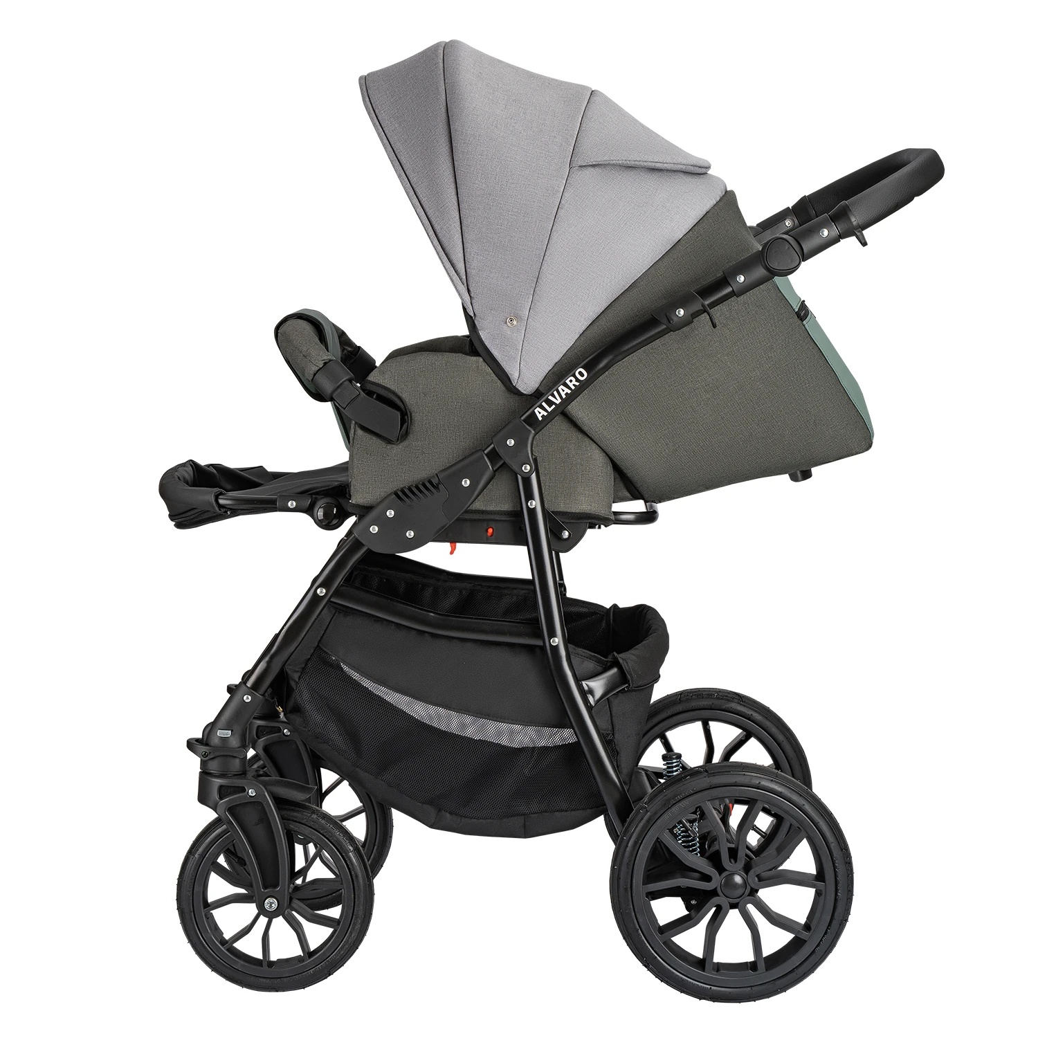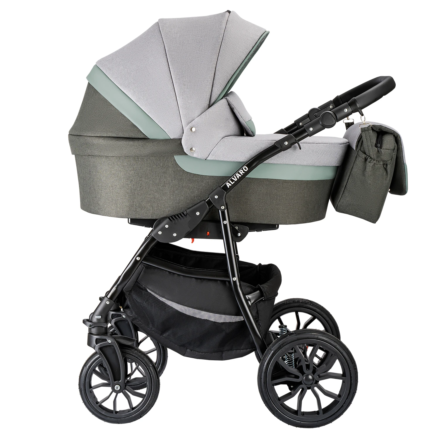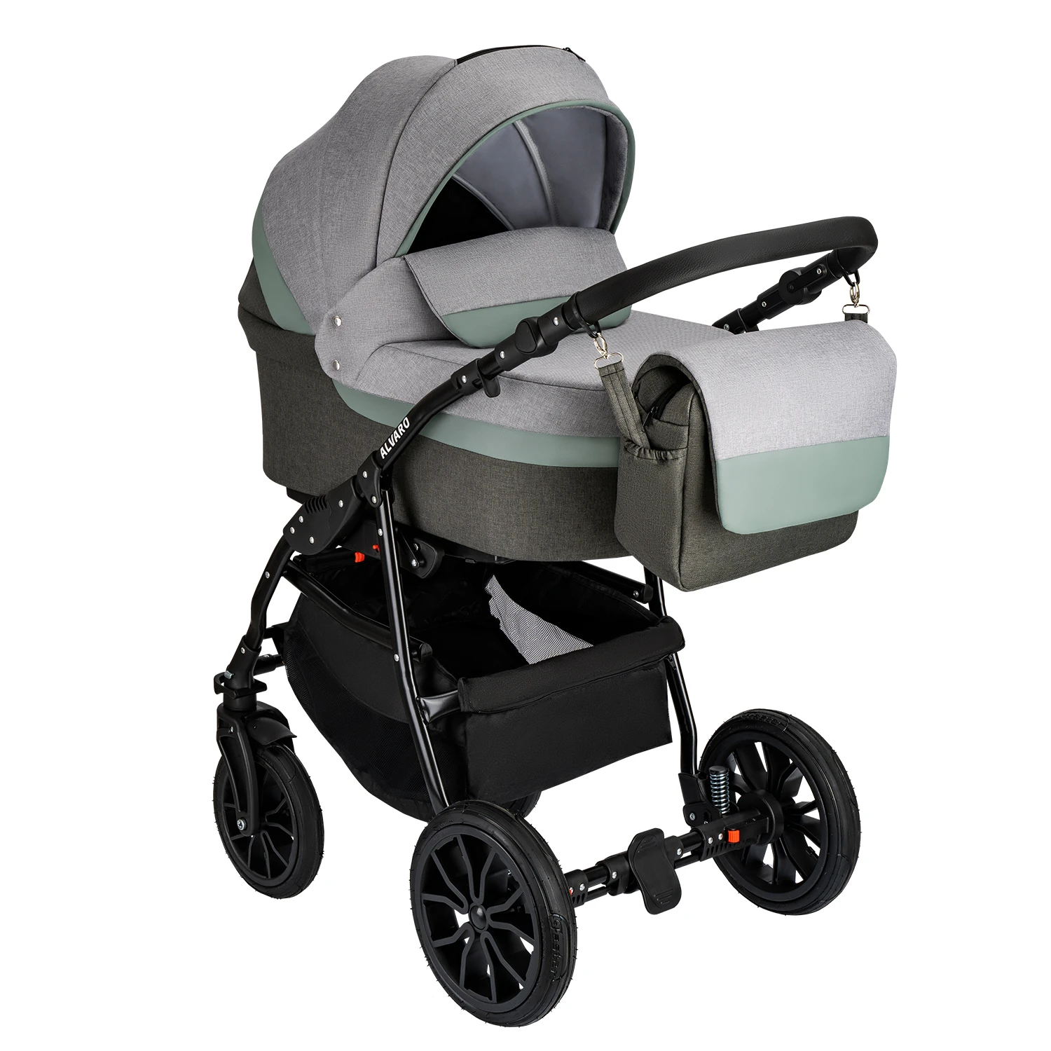 Коляска Alis Alvaro 2в1 (Al 10 (т.серый+св.серый+шалфей кожа))