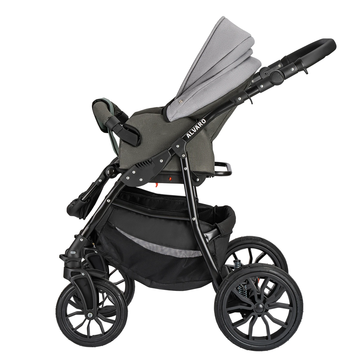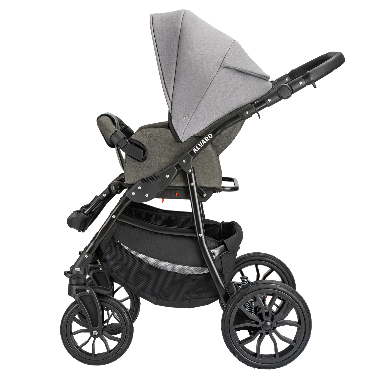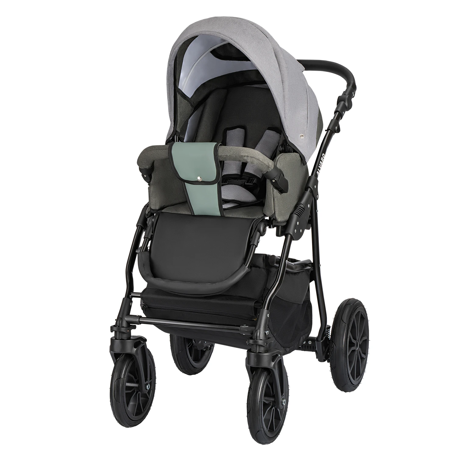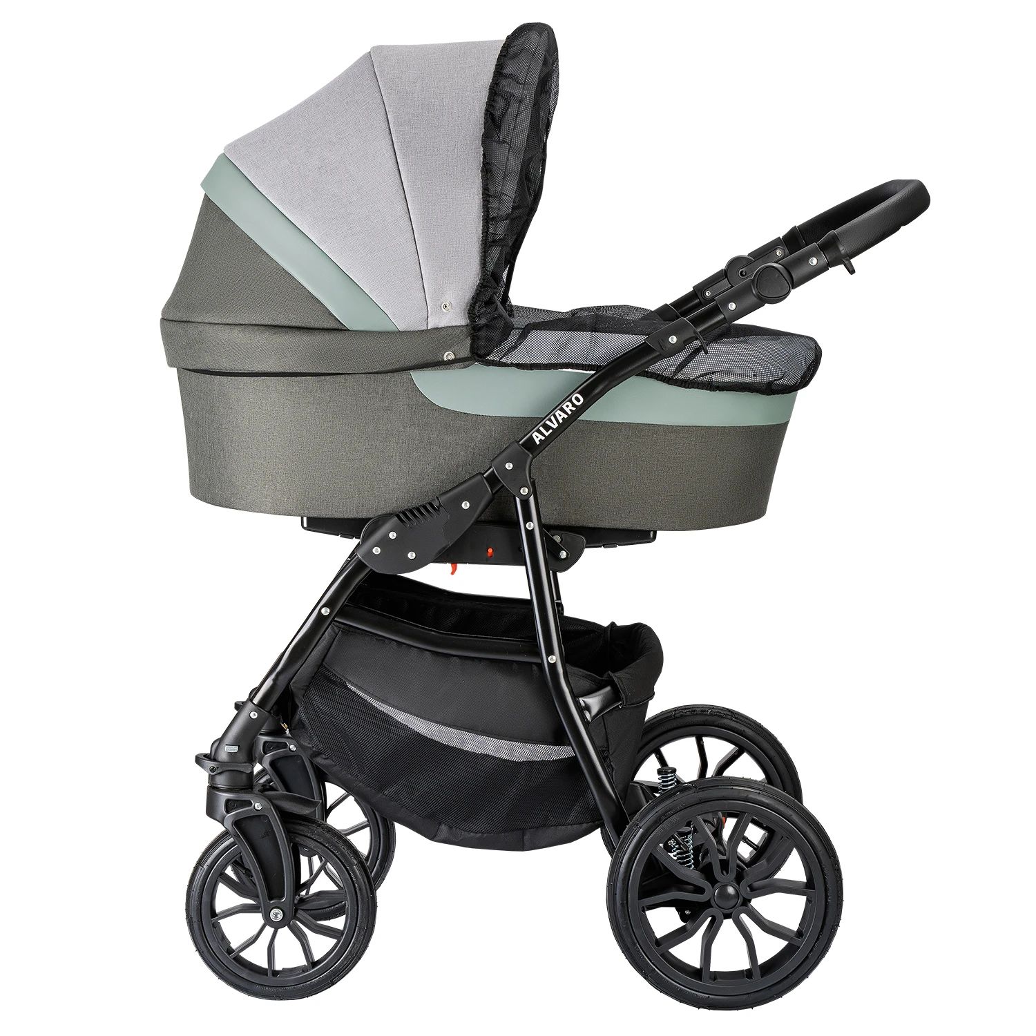Коляска Alis Alvaro 2в1 (Al 10 (т.серый+св.серый+шалфей кожа))
