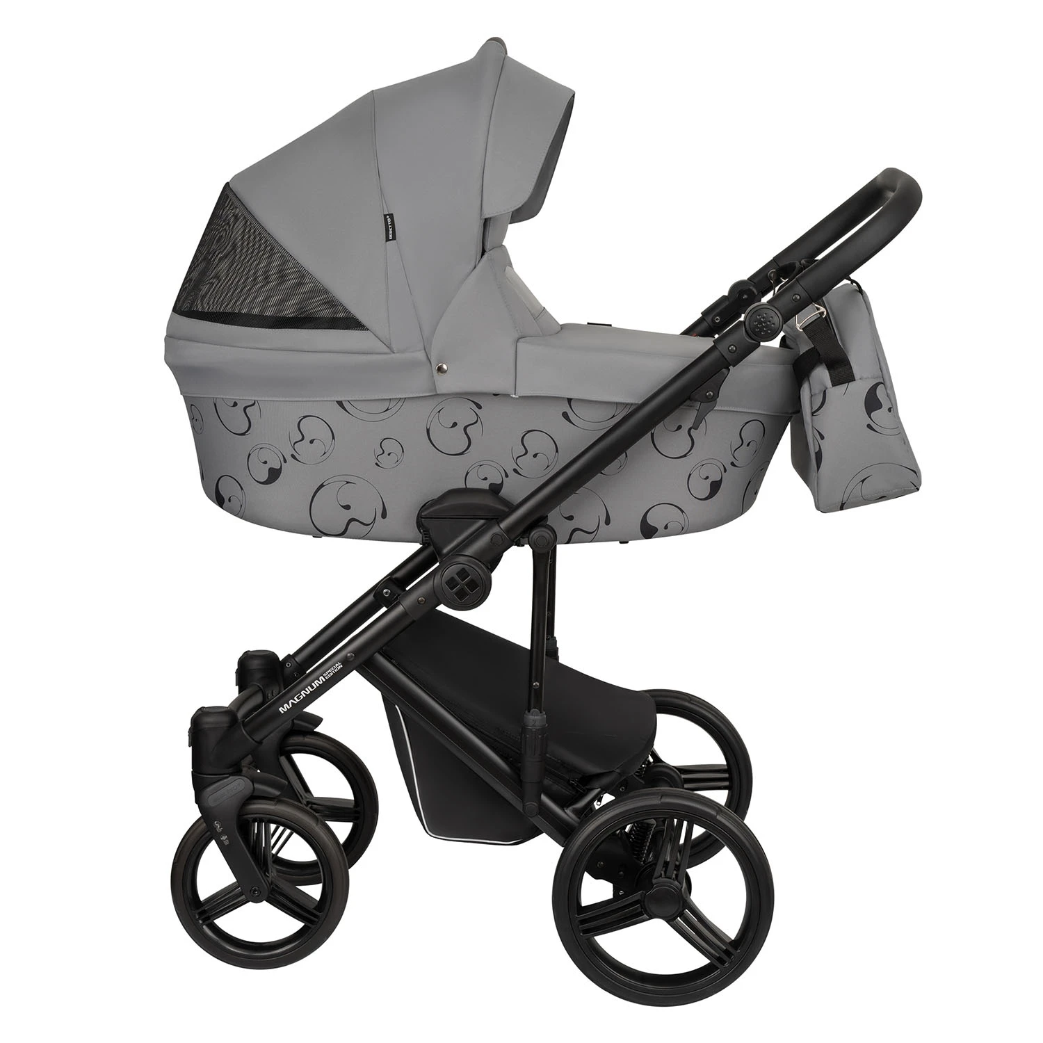 Дизайн модели отличается утончённой эстетикой и функциональностью. Особое внимание привлекает оригинальный принт на люльке, который придаёт коляске неповторимый характер и выделяет её среди других моделей.