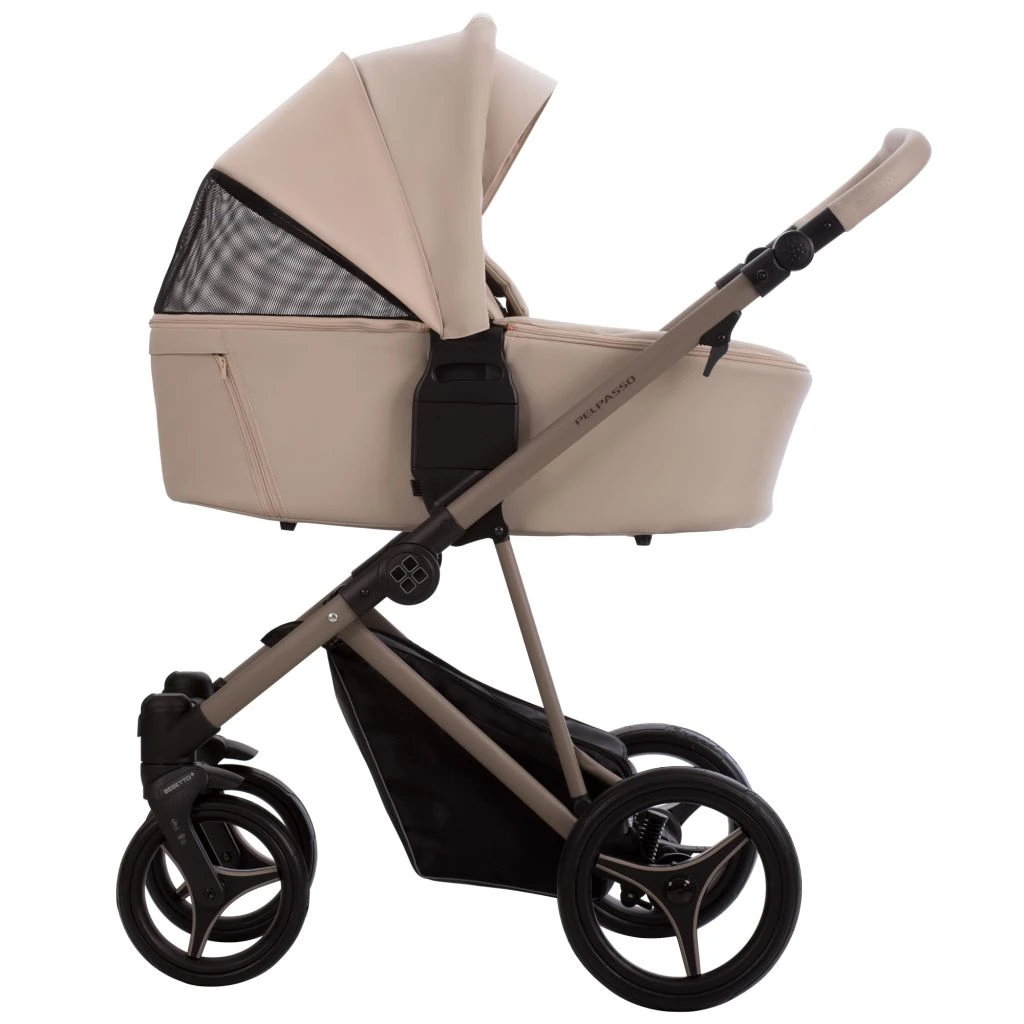 Коляска Pelpasso PRO 2в1 от Bebetto – это обновленная версия популярной модели, которая сочетает в себе комфорт, элегантность и инновационные технологии. Отличительной особенностью является просторная люлька и компактный прогулочный блок из экокожи, который не только стильно выглядит, но и прост в уходе. Такой материал устойчив к влаге и загрязнениям, что делает его отличным выбором для современных родителей.