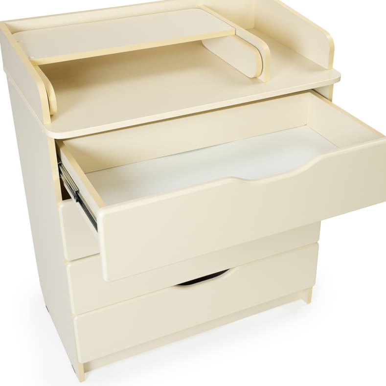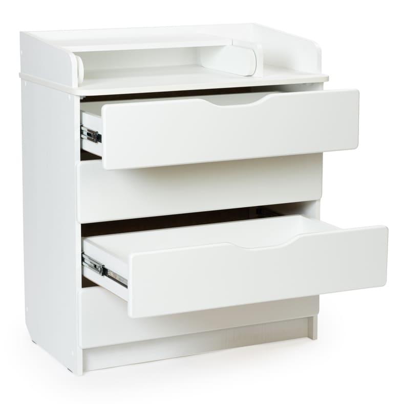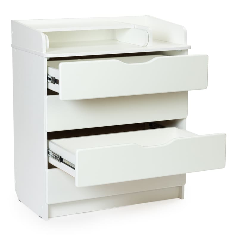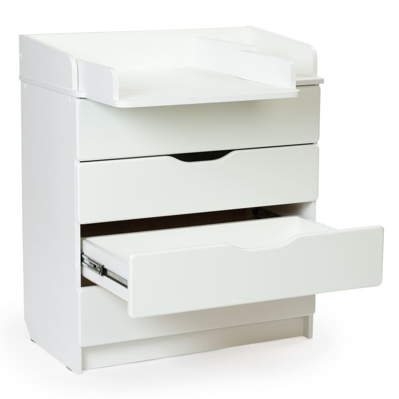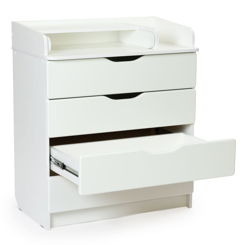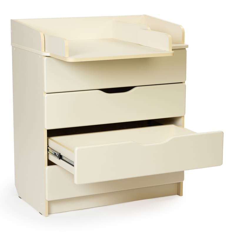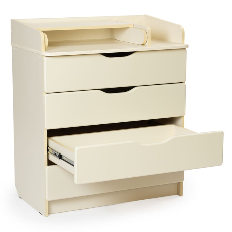 Это незаменимый предмет в доме, выступающий не только в роли шкафа для детских вещей, но и как пеленальный столик и место для переодевания ребёнка.