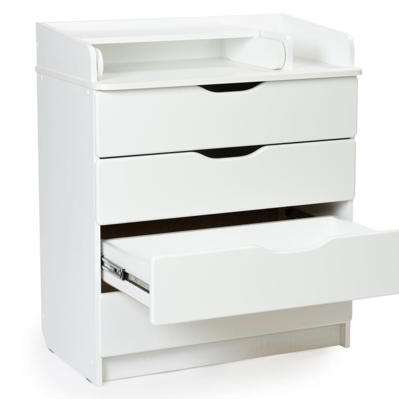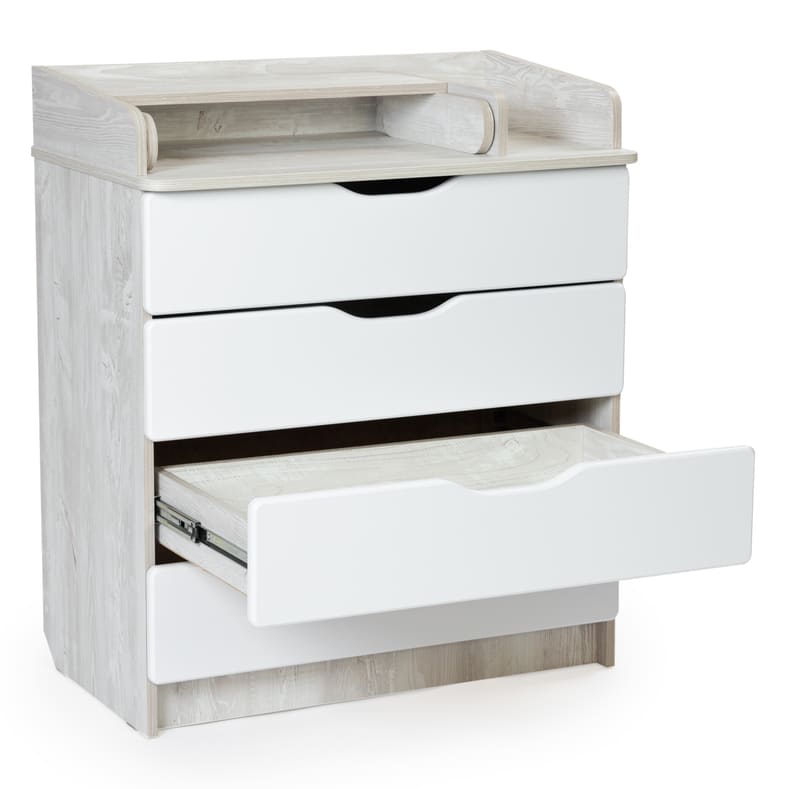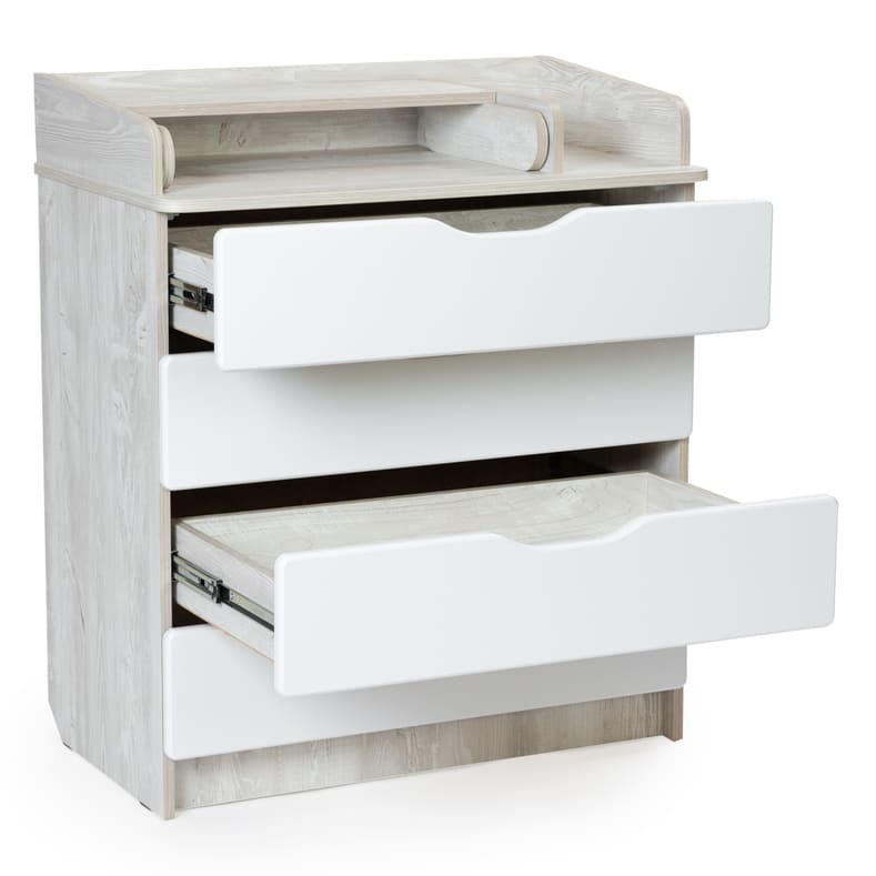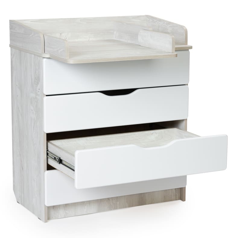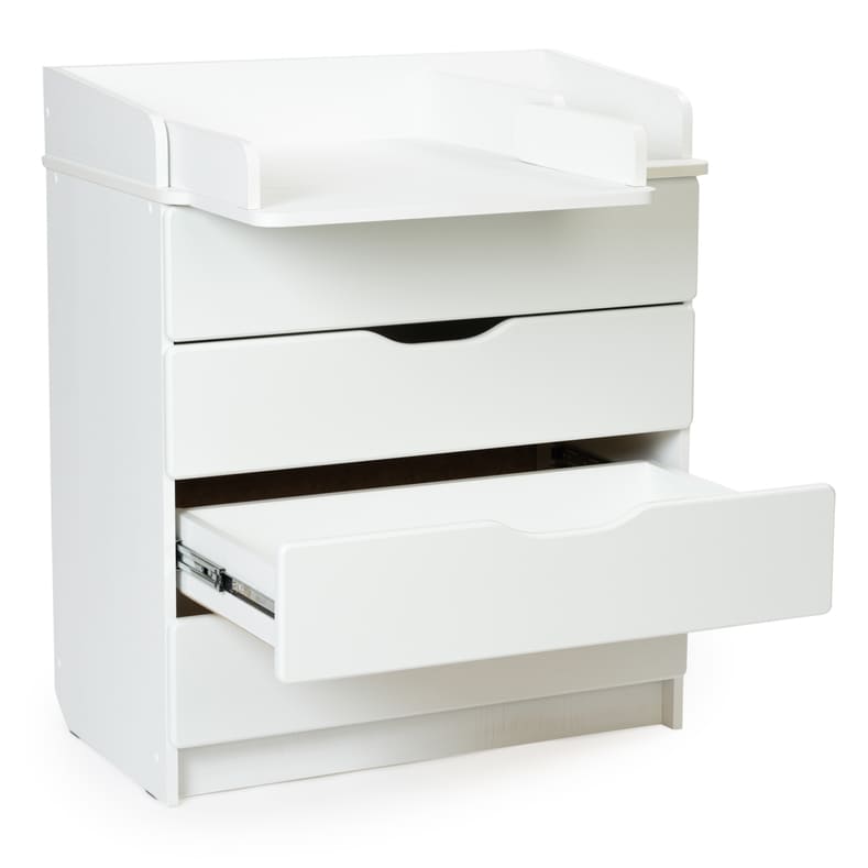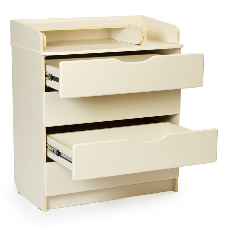Это незаменимый предмет в доме, выступающий не только в роли шкафа для детских вещей, но и как пеленальный столик и место для переодевания ребёнка.