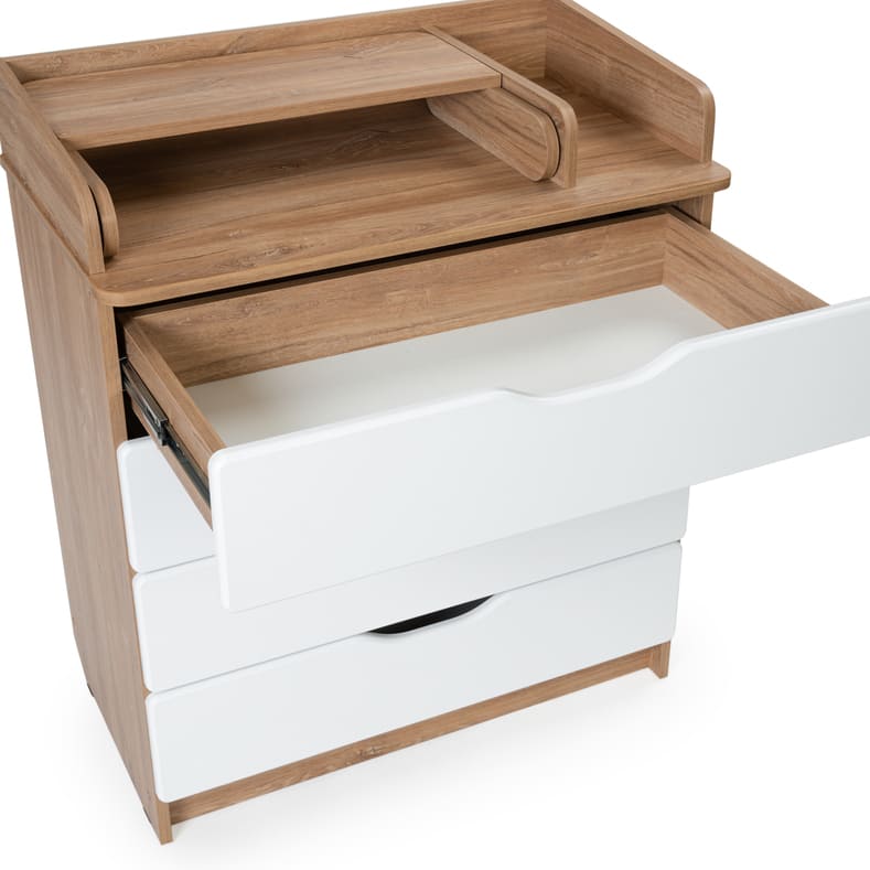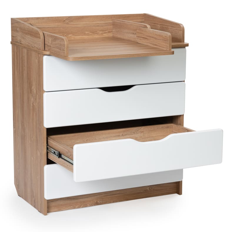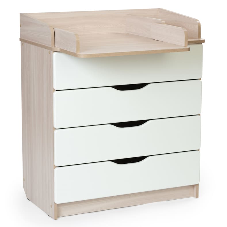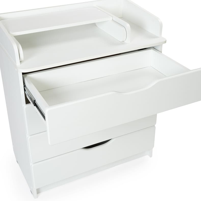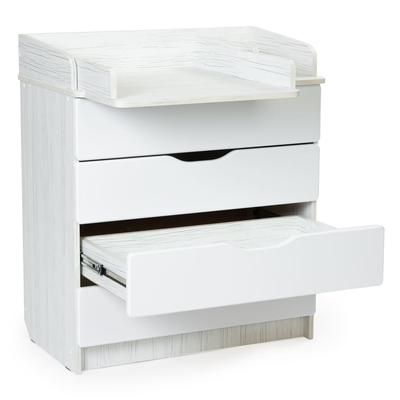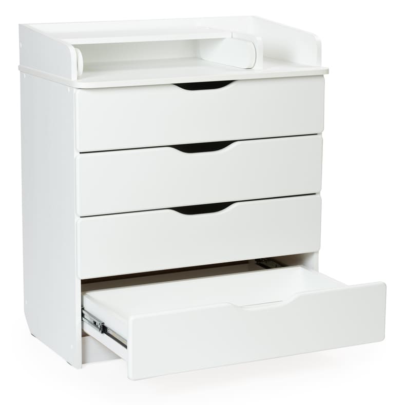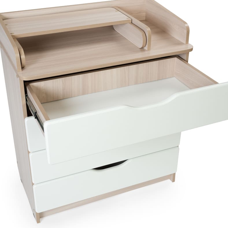 Это незаменимый предмет в доме, выступающий не только в роли шкафа для детских вещей, но и как пеленальный столик и место для переодевания ребёнка.