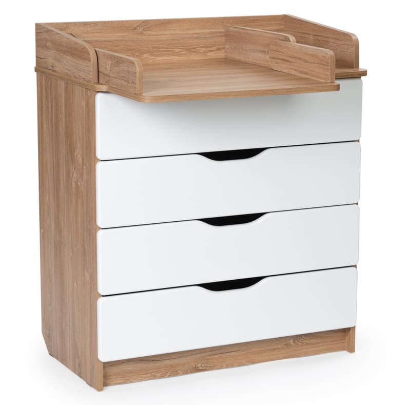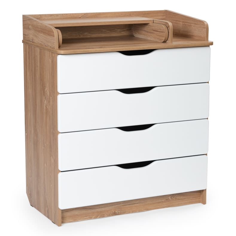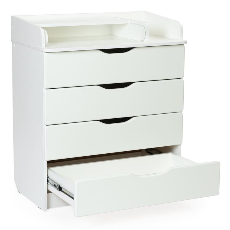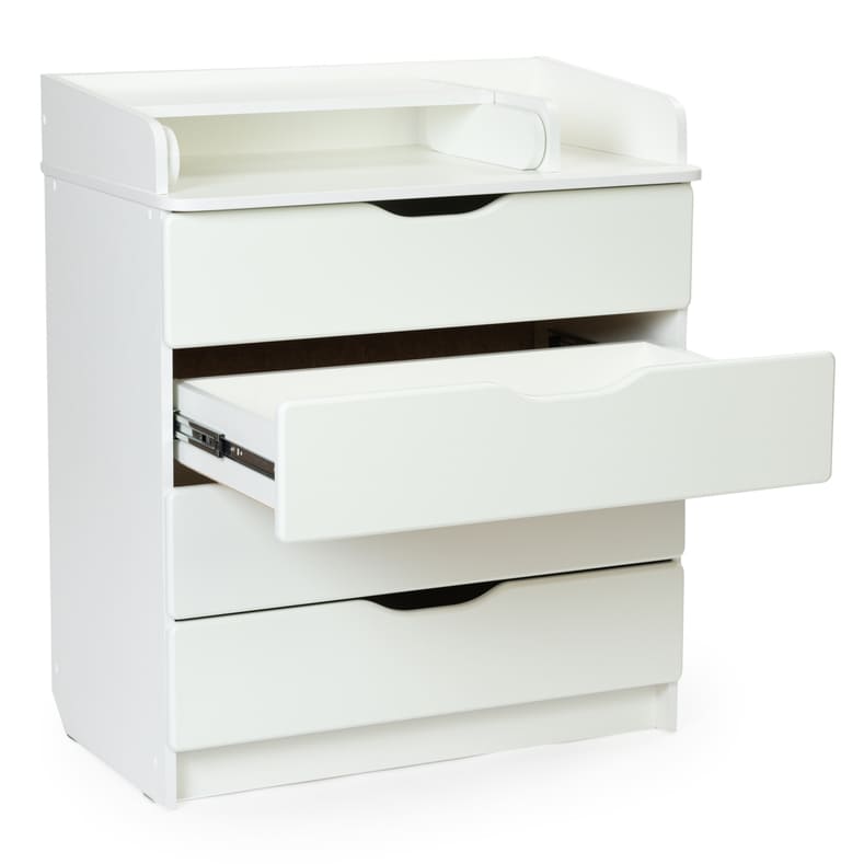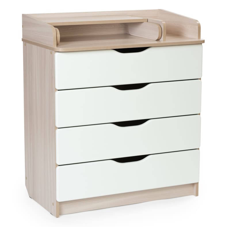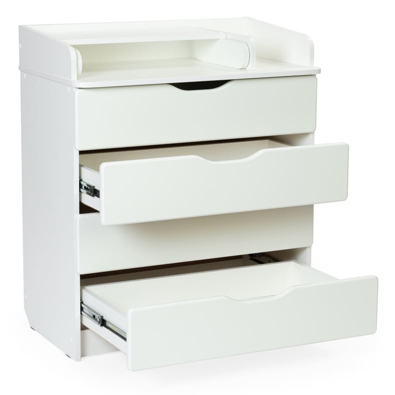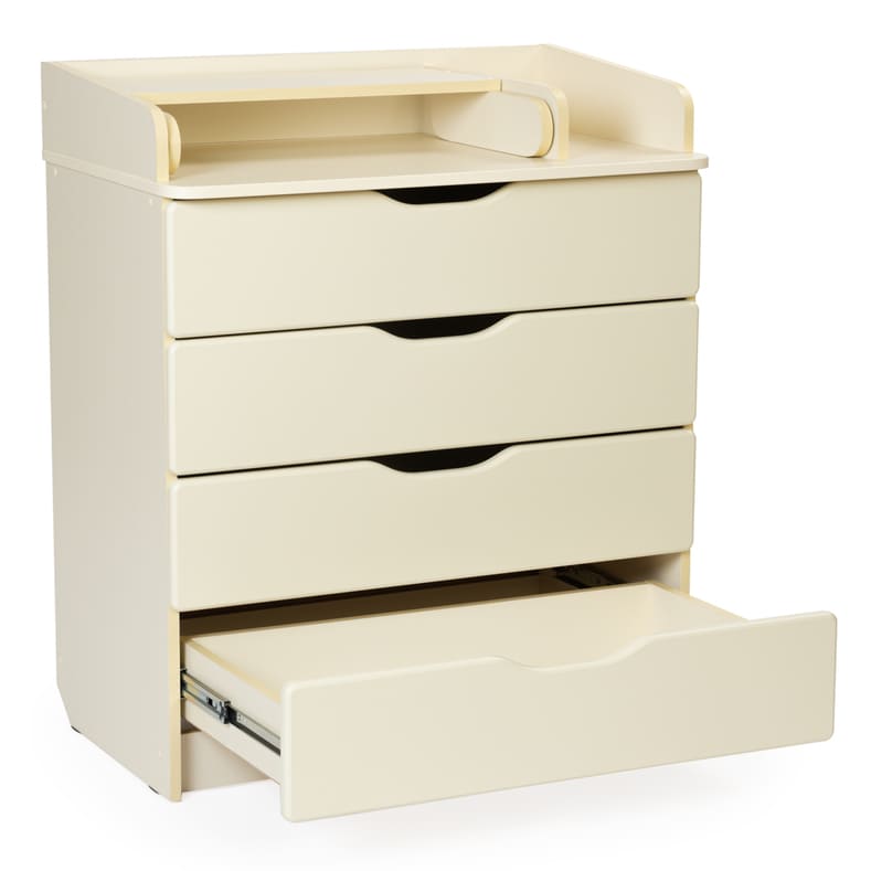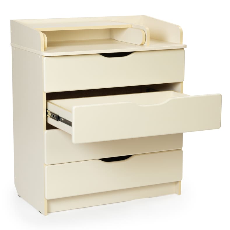 Удобный и практичный комод с 4-я ящиками позволит значительно сэкономить пространство и разместить все необходимое для вашего ребёнка, детские вещи, подгузники, средство для гигиены.