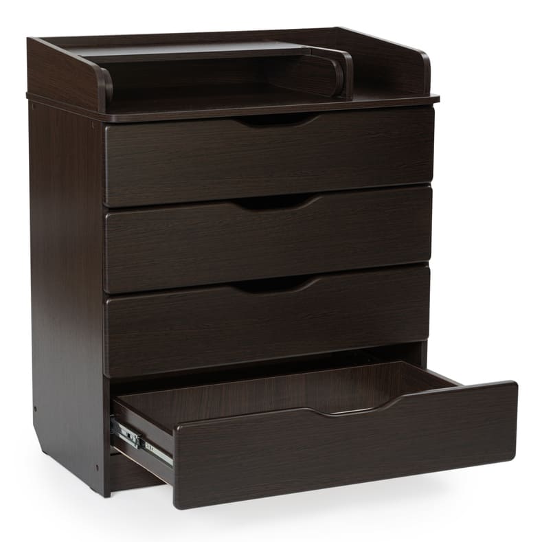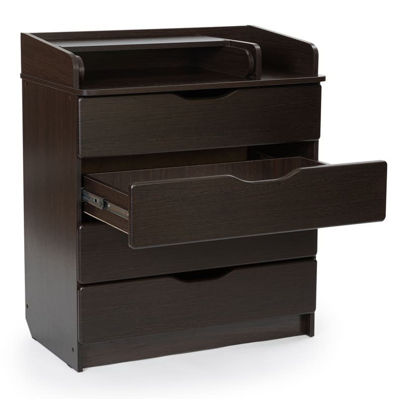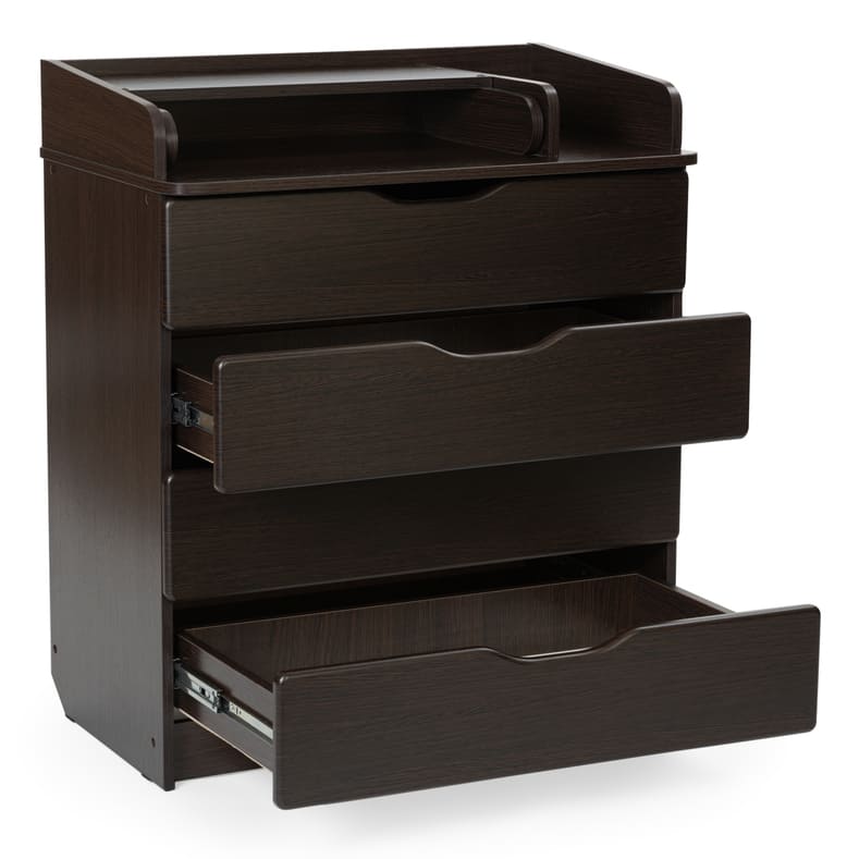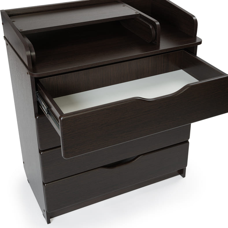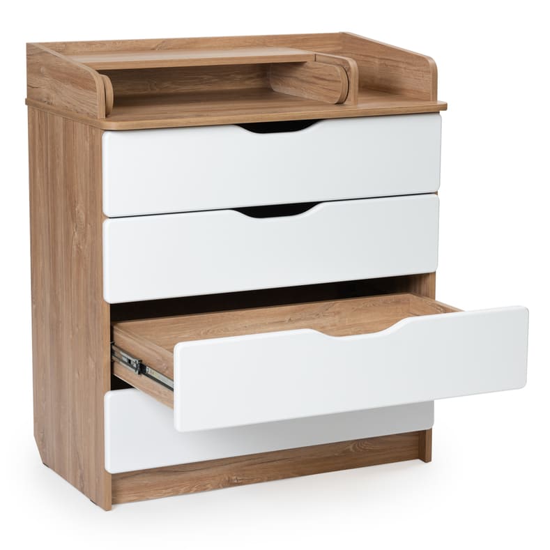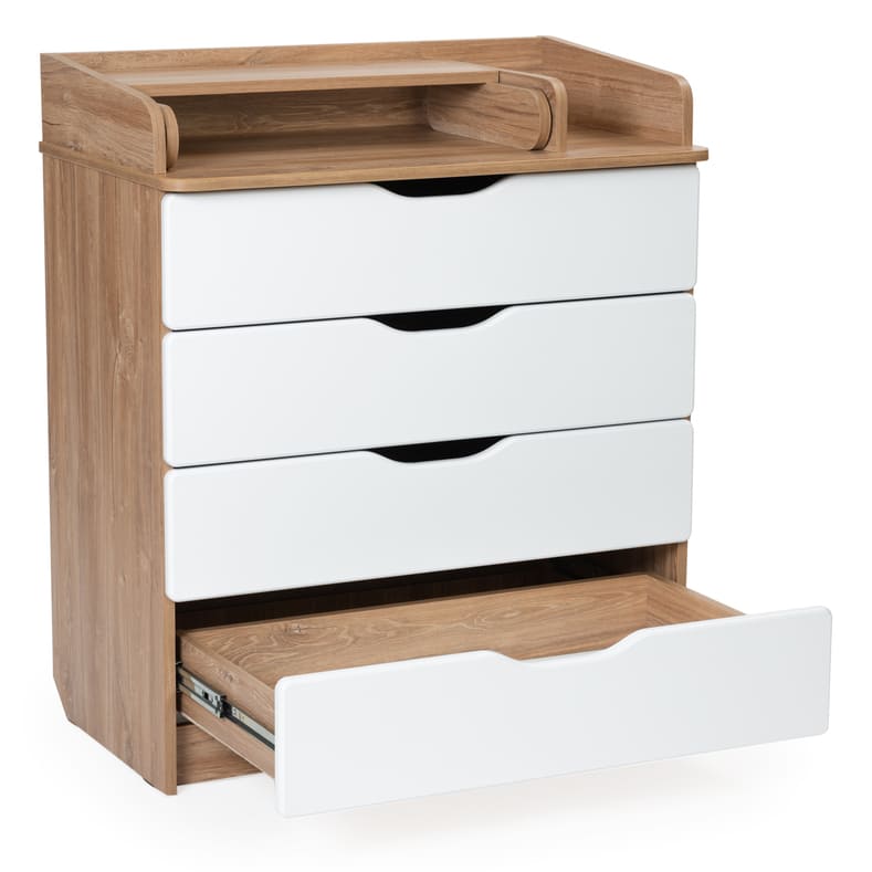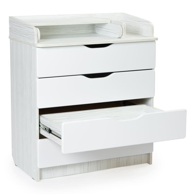 Комод оборудован пеленальным столиком с простым и надежным механизмом раскладывания, 4-е вместительных ящика.