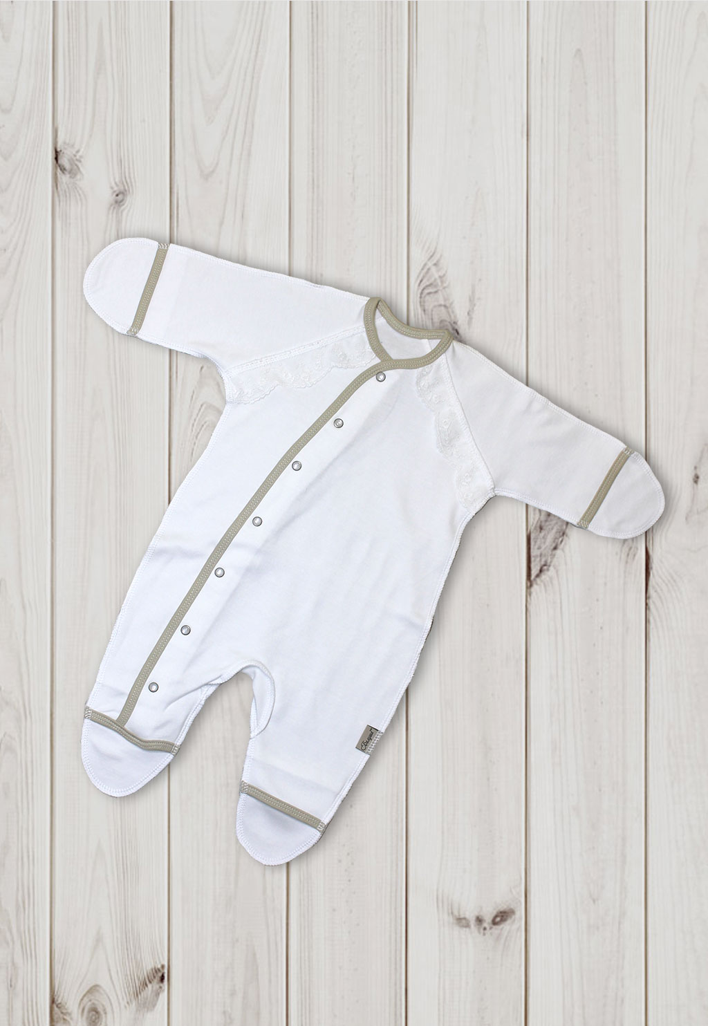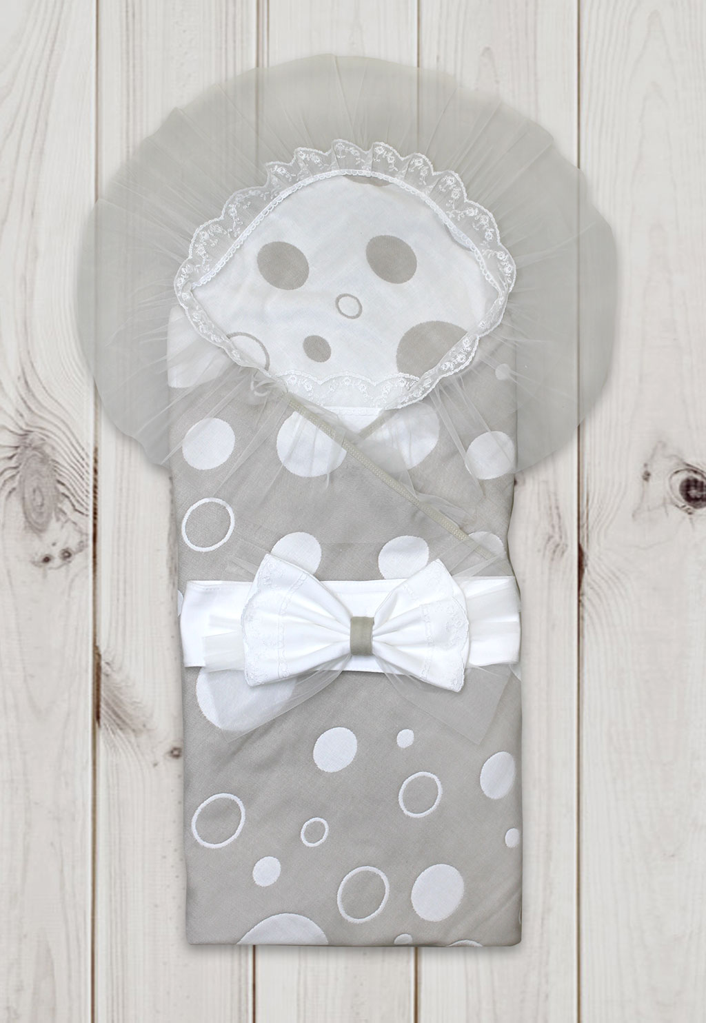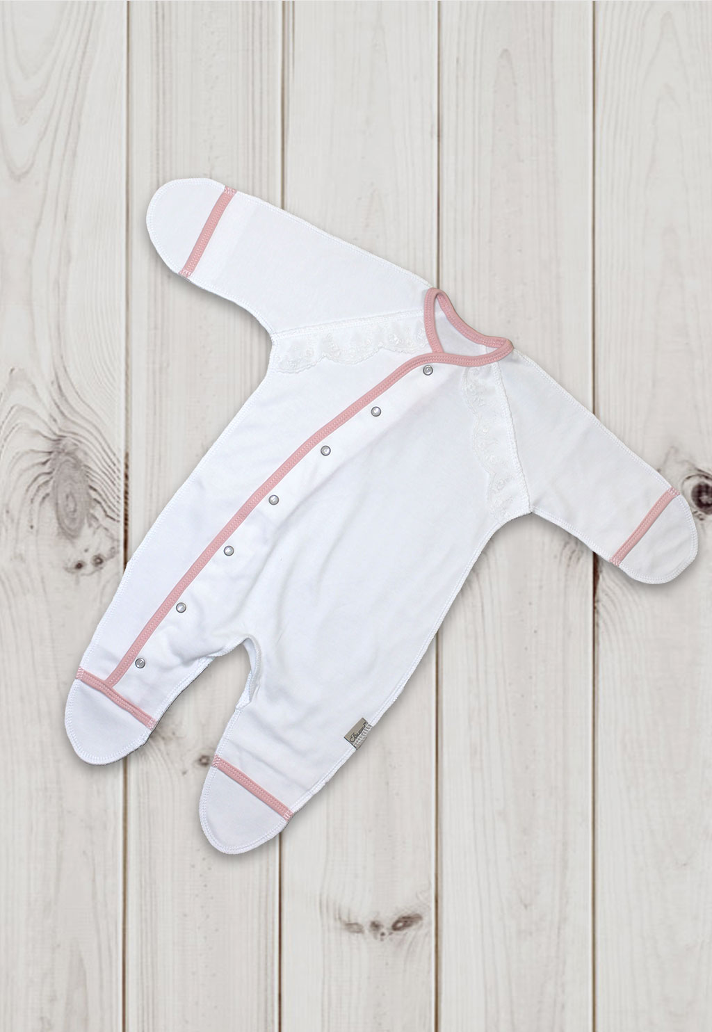 Комплект на выписку Эко-люкс Варианты: лето Комплект из 5 предметов: - плед из 2-х слойного жаккардового хлопка 80х120см (+-5см); - нарядный уголок; - комбинезон с откр.-закрывающимися ручками (р-р 56см); - шапочка (р-р 38см); - бант на липучке Ткань: 100% х/б, кружево-100% п/э