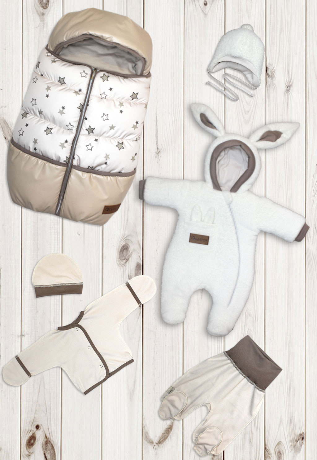 SKU—Комплект на выписку Балуша Зайчиш (Капучино)