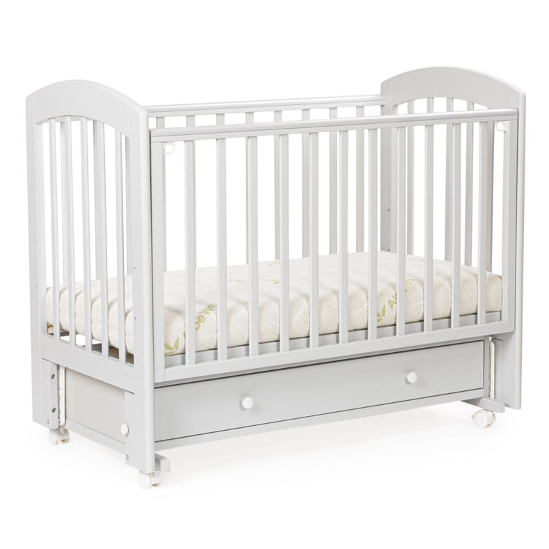 кроватка имеет удобный и практичный ящик для хранения белья;