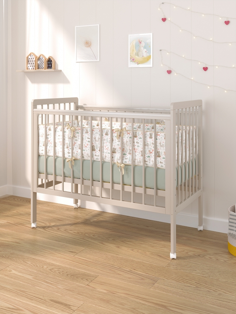 Бортики кровати имеют накладки (антигрызунки), которые будут актуальны при прорезывании зубов и не травмировать десна.