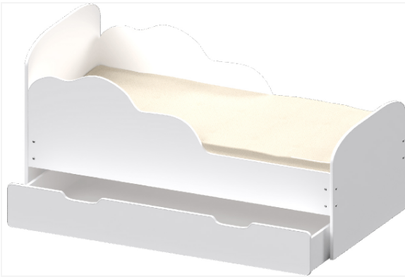 Кровать подростковая Облака-1 160х80см с ящиком ЛДСП (Белый/Белый)