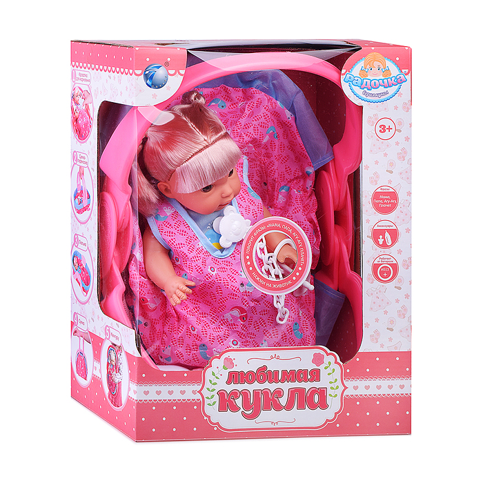 - при нажатии на звуковой модуль произносит: "Мама", "Папа", "Агу-агу", плачет.