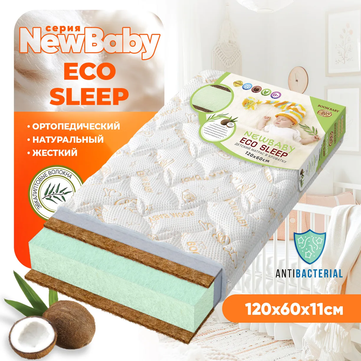 Матрас NewBaby «Eco Sleep» обладает прекрасным ортопедическим эффектом и равномерной жесткостью с обеих сторон. Высокая жесткость кокосовых волокон гарантирует ровную поверхность, способствуя правильному формированию осанки и укреплению костных и мышечных тканей.