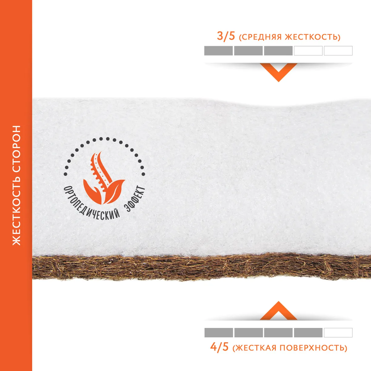 - жесткость: сторона А (кокос) 4/5 , сторона В (холлофайбер хард) 3+/5