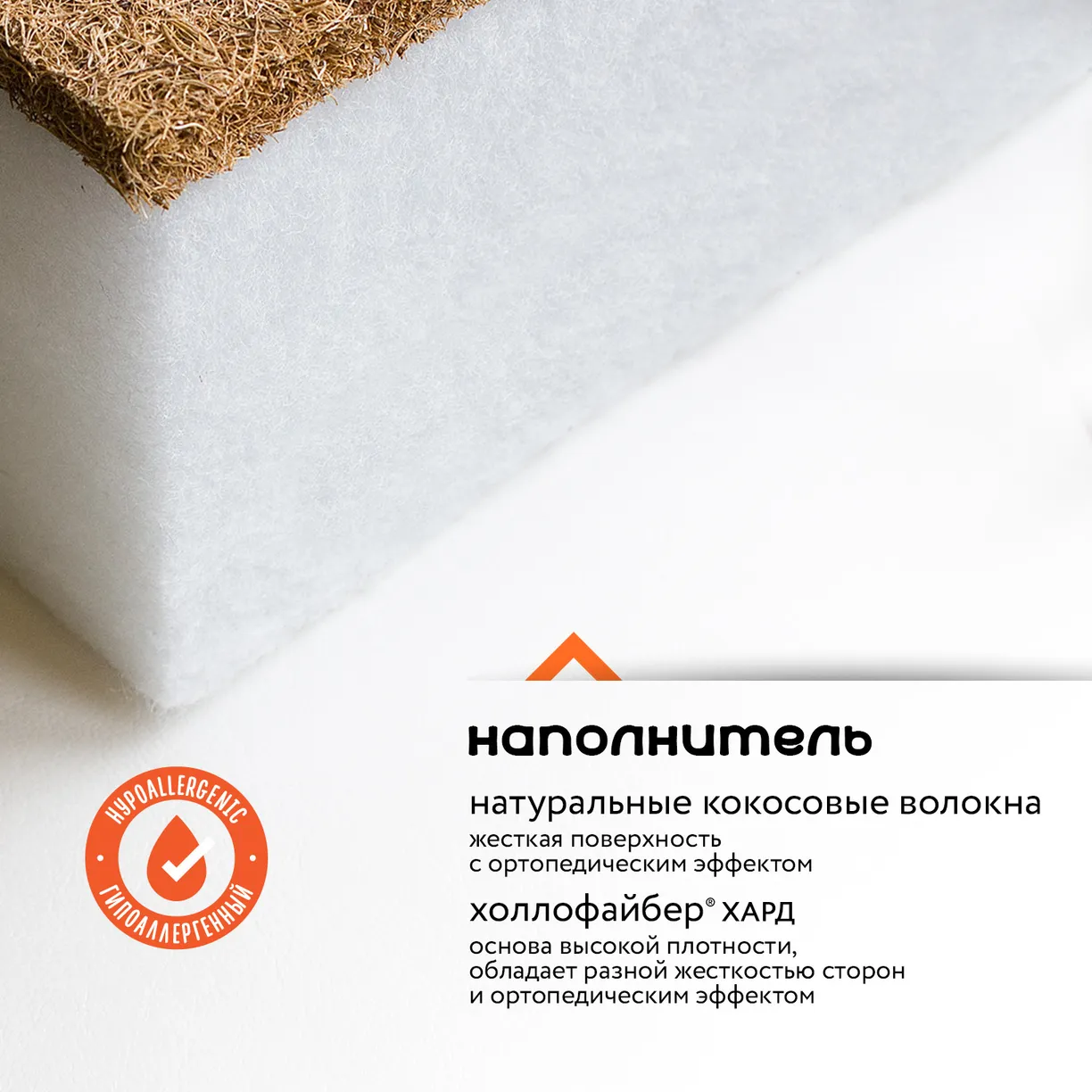 - Основа из Холлофайбера Хард® — экологичный, гипоаллергенный наполнитель с повышенной упругостью. Поддерживает анатомическую форму, снимает нагрузку с мышц и суставов.