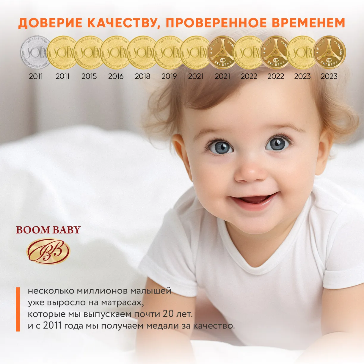 Матрас укомплектован брендированным трикотажным чехлом "Boom Baby", стеганым на дабл-синтепоне. Это высококачественный трикотаж, созданный многослойным плетением, что обеспечивает нежную и комфортную поверхность. Чехол не боится деликатной стирки, не усаживается в размере и не теряет своей мягкости и яркости цветов, и будет долгое время радовать Вас и Вашего малыша. Молния по всему периметру чехла позволяет при необходимости быстро и легко его снять.