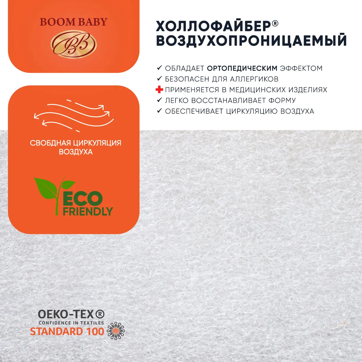 Основа из Холлофайбера® делает матрас устойчивым к деформации, очень упругим и с прекрасным воздухо- и влагообменом. При этом несомненным преимуществом материала является уникальный ортопедический эффект, который достигается в том числе и за счет уникальной структуры волокон, имитирующих принцип работы пружин и помогающих формировать естественные изгибы позвоночника и мышечный корсет Вашего малыша. Это экологичный наполнитель, абсолютно безопасный для склонных к аллергии малышей, поскольку его состав не способствует размножению клещей и прочих вредных микроорганизмов.