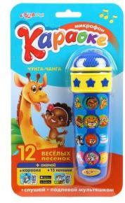 Новые оригинальные микрофоны-караоке для будущих звёзд сцены! В каждом микрофоне – 14 популярных песенок В. Шаинского, Е. Крылатова, М. Танича и других известных композиторов: "Чунга-Чанга", "Песенка о жирафе", "Танец утят", "Какой чудесный день!", "Песенка паровозика", "Когда мои друзья со мной", "Песенка друзей", "Белые кораблики", "Песня Львёнка и Черепахи", "Облака", "Здравствуй, детство!", "По дороге с облаками", "Весёлая карусель", "Песенка о лете". Нажимай на кнопочки-звёздочки - пой с Крошкой Енотом, Мамонтенком, Антошкой и другими мультяшками.