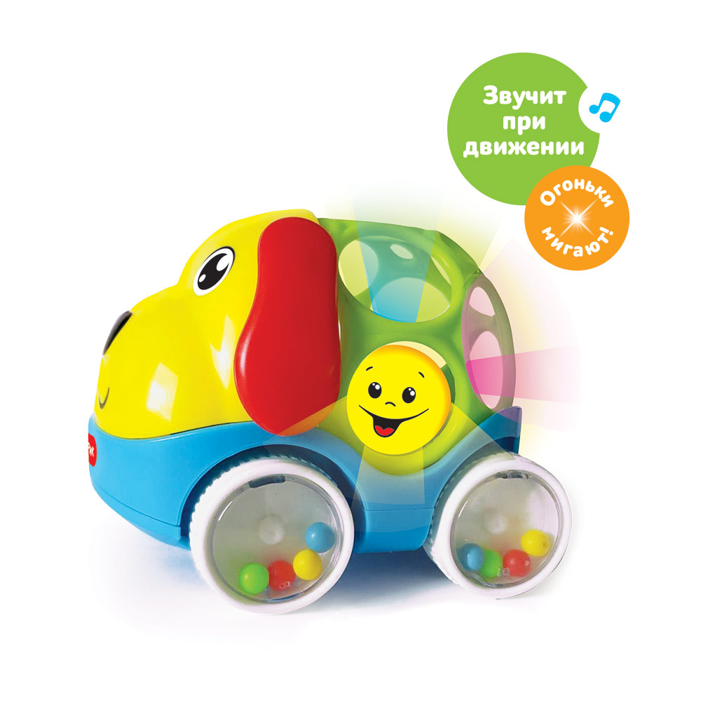 Игра с этой милой собачкой на колесиках не только развлекает ребенка, но и развивает у него музыкальные способности, двигательную активность, тактильные ощущения.