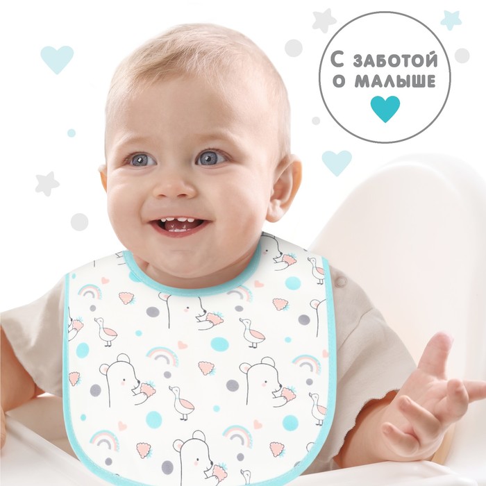 Непромокаемый нагрудник подходит для крошек, которые учатся кушать самостоятельно. Одежда останется сухой и чистой, а сам малыш сохранит опрятный и аккуратный вид после приёма пищи.