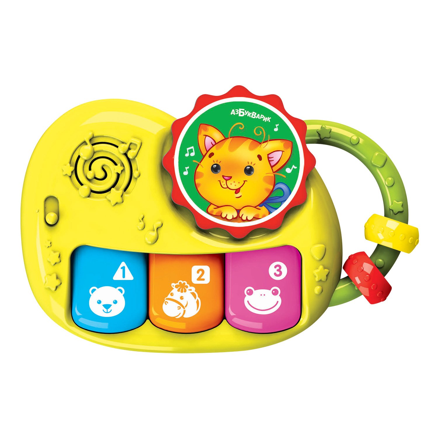 Миниатюрная игрушка-пианино разработана специально для малышей. Нажимая на яркие клавиши ребенок послушает 6 милых песенок о зверятах. Переключите режим — и на клавишах зазвучат веселые мелодии. Под них кроха сможет сам подыграть голосами зверят и смешными звуками. Эта игра не только развлекает, но и развивает у ребенка воображение и музыкальные способности. Во время звучания песенок и мелодий клавиши светятся. Также малышу понравится крутить колесико с забавной зверюшкой и слушать звук трещотки. А яркие колечки и рельефные элементы игрушки так приятно трогать детскими пальчиками! Пианино удобно носить с собой.
