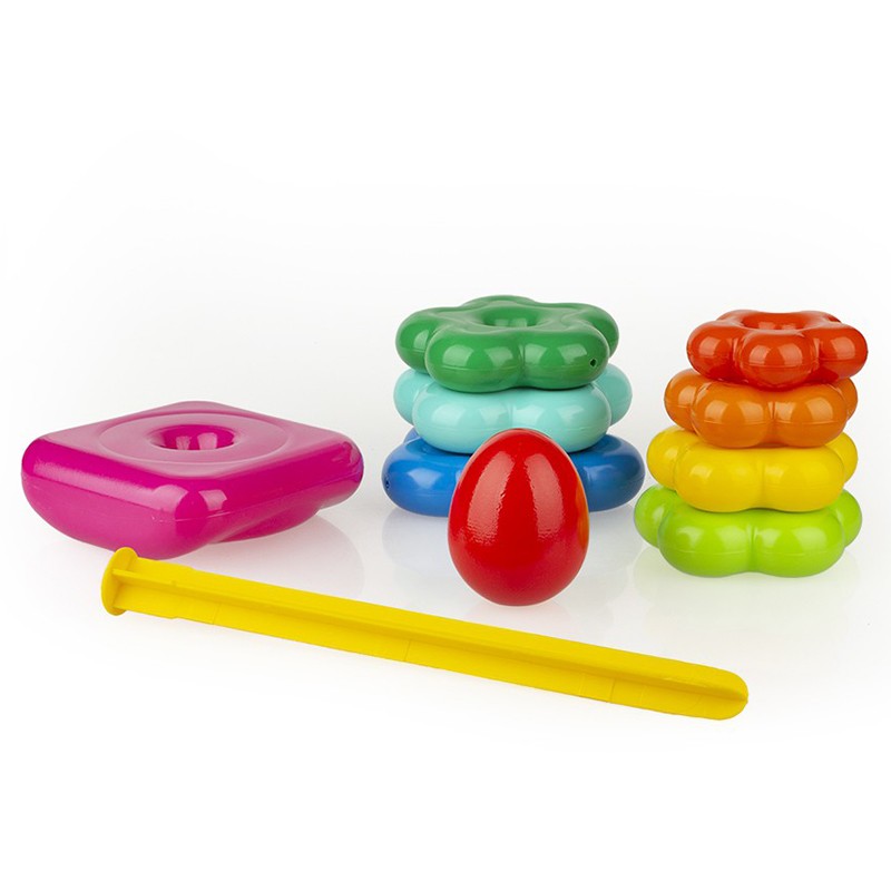 Задача малыша — собрать кольца в правильной последовательности (от самого большого до самого маленького).