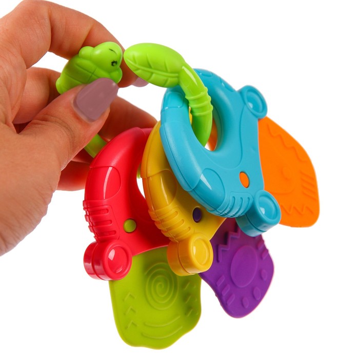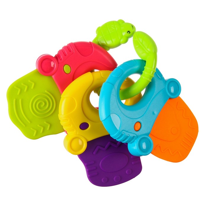 Звук в модели появляется при встряхивании. Причудливая форма надолго займёт внимание карапуза. Погремушку удобно использовать: лёгкая вещица подходит для захвата маленькими ладошками.