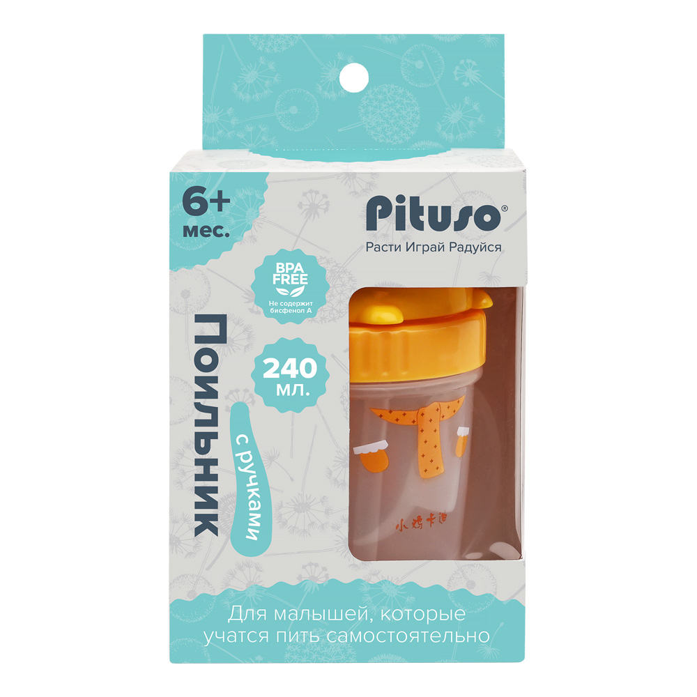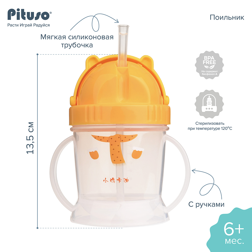 Поильник с ручками, с трубочкой PITUSO.