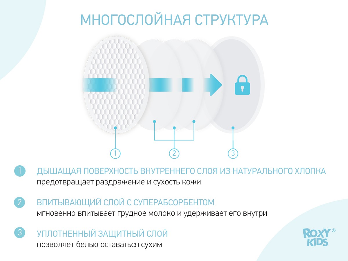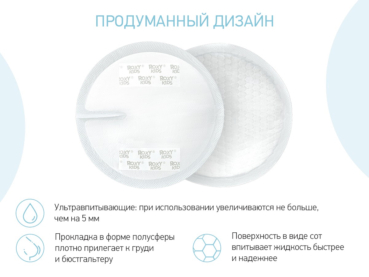 Прокладки для груди являются незаменимым предметом личной гигиены любой мамы. Мягкая текстура волокна с современным суперабсорбентом надежно впитает всю влагу и предотвратит раздражение кожи груди и сосков. Вкладыши удобно крепятся к бюстгальтеру с помощью двойного клейкого слоя, а их объемная форма обеспечит плотное прилегание к груди. Внешняя поверхность препятствует попаданию влаги на одежду и при этом позволяет коже дышать. Каждая прокладка упакована в индивидуальную упаковку для удобного хранения.
