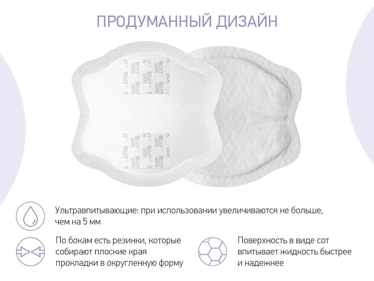 Прокладки для груди являются незаменимым предметом личной гигиены любой мамы. Мягкая текстура волокна с современным суперабсорбентом надежно впитает всю влагу и предотвратит раздражение кожи груди и сосков. Вкладыши удобно крепятся к бюстгальтеру с помощью двойного клейкого слоя, а их объемная форма обеспечит плотное прилегание к груди. Внешняя поверхность препятствует попаданию влаги на одежду и при этом позволяет коже дышать. Каждая прокладка упакована в индивидуальную упаковку для удобного хранения.